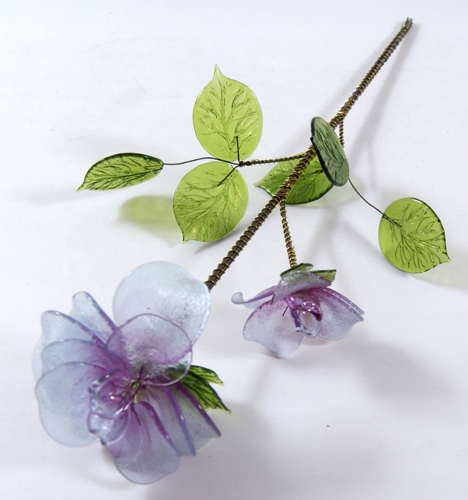 Красивый старый цветок из цветного стекла, проволочная конструкция.