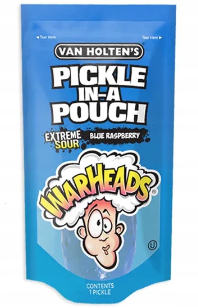 Van Holten's Warheads Pickle-In-A-Pouch Blue Raspberry — это очень крутой маринованный огурец с кисловатым вкусом, вдохновленный культовыми конфетами Warheads. Голубая малина и насыщенно кислая начинка создают сочетание, которое удивит даже самых сумасшедших любителей кислых закусок. Каждый огурец упакован индивидуально, что делает его идеальным для поездки или в качестве оригинальной закуски на вечеринке.