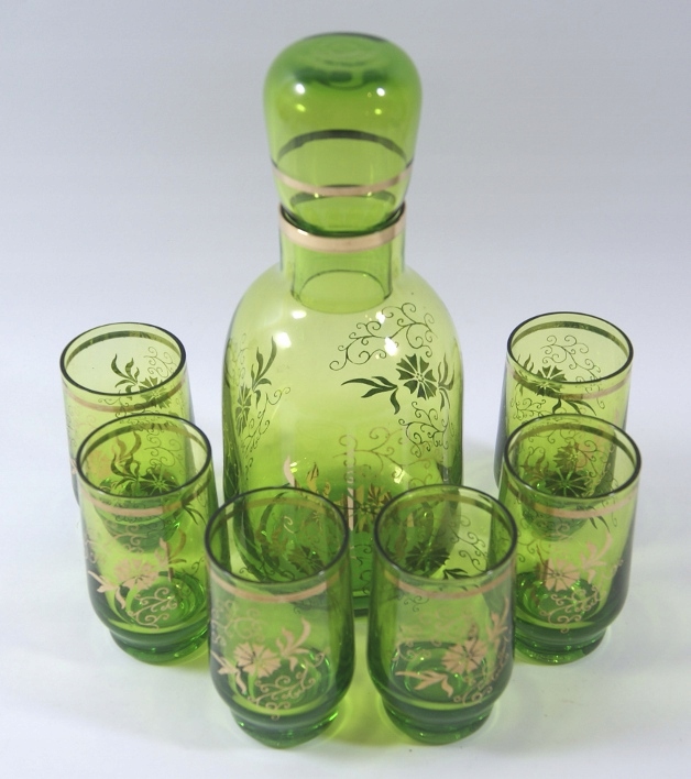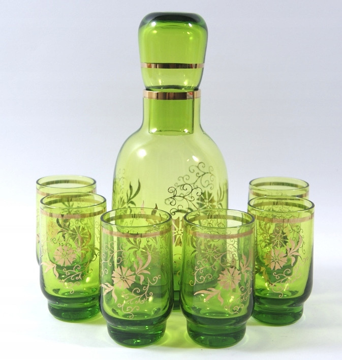 БОГЕМИЯ - LOVELY OLD НАБОР ДЛЯ ЛИКЕРА, ЛИКЕР - зеленый, хрусталь