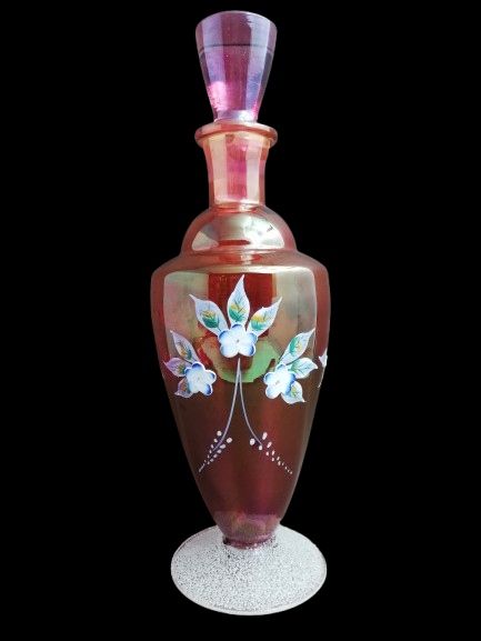 Bohemia cudna karafka szkło barwione butelka ręcznie malowana Czechy kwiaty