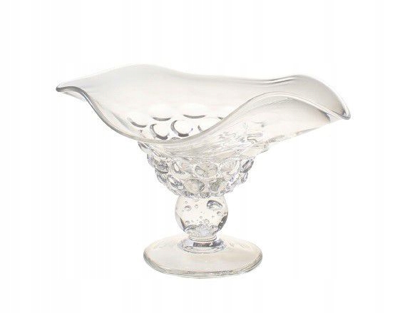 Фруктовая тарелка из бесцветного содового стекла ручной формовки. Кубок со складчатым воротником опирался на стеклянный шар с множеством пузырьков воздуха. Основание в форме диска. Чехословакия, вторая половина XX век