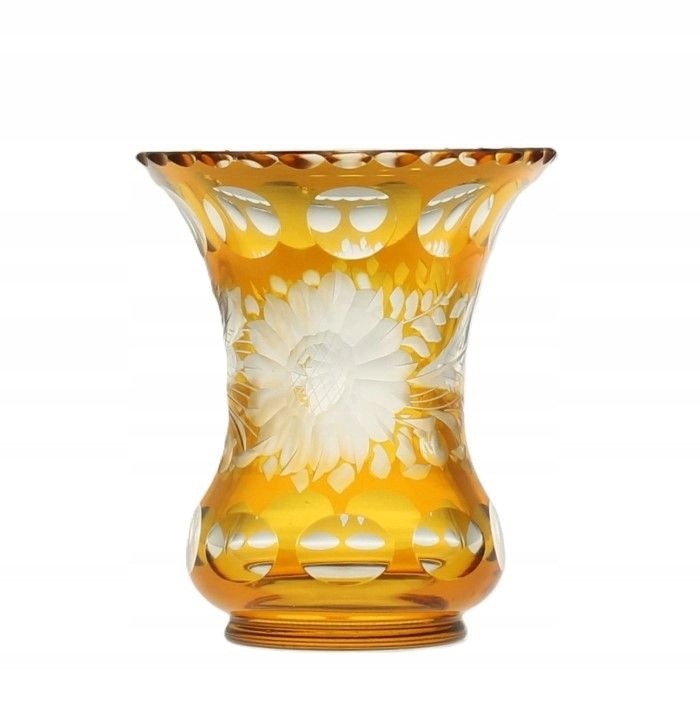 BOHEMIA ŻÓŁTY WAZON KRYSZTAŁOWY LAZUROWANY