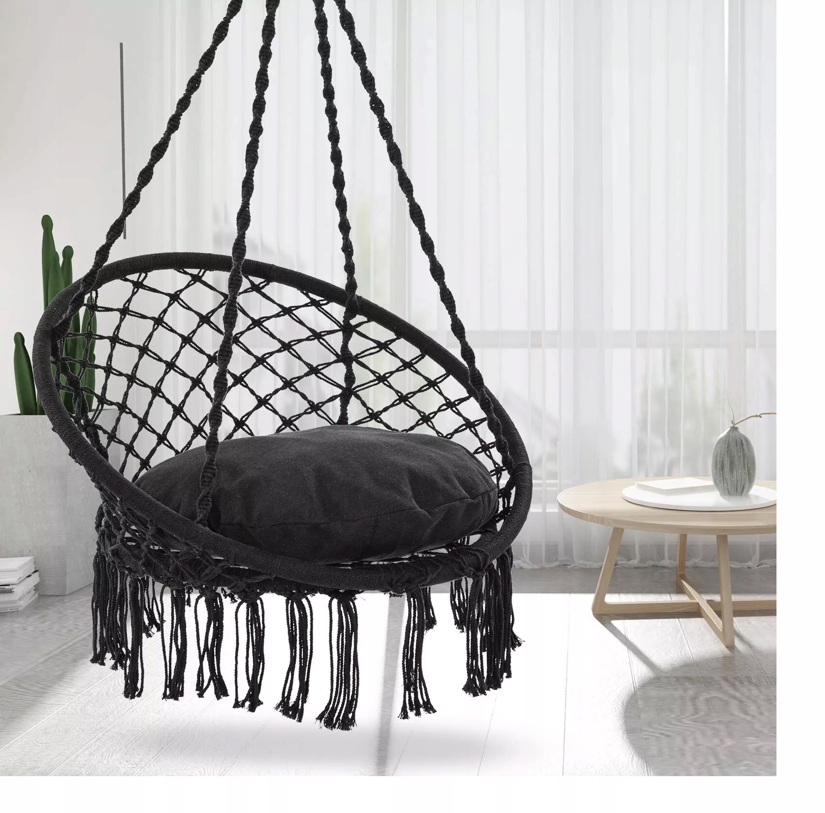 ✅ ПОДВЕСНОЙ СТУЛ ✅ САДОВЫЙ СТУЛ ✅ МЯГКАЯ КРУГЛАЯ ПОДУШКА ✅ СТИЛЬНЫЙ ДИЗАЙН ✅ ПРОЧНЫЙ СТАЛЬНОЙ КАРКАС ✅ ВЕРЕВКА ВРУЧНОЙ ПЛОТКИ ✅ ДО 80% ХЛОПКА ✅ ВМЕСТИМОСТЬ ДО 150 КГ ✅ ЛЕГКАЯ СБОРКА ✅ ИДЕАЛЬНО ДЛЯ КОМНАТЫ, ГОСТИНОЙ, САДА, БАЛКОН ✅ СТИЛЬ БОХО ✅ ЭЛЕГАНТНОСТЬ ✅ РАССЛАБЛЕНИЕ И КОМФОРТ ✅