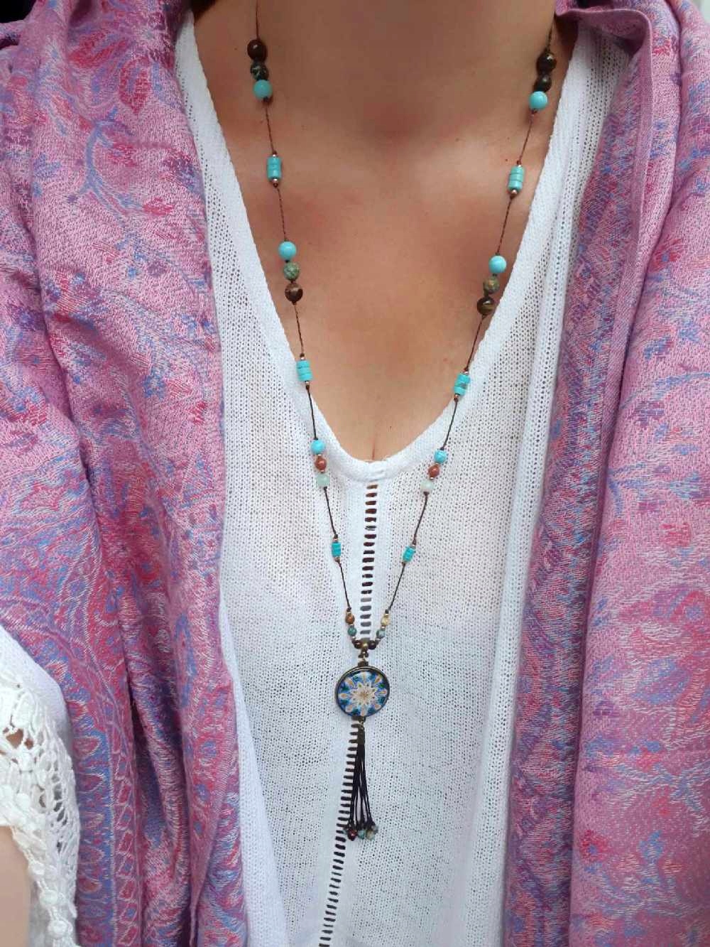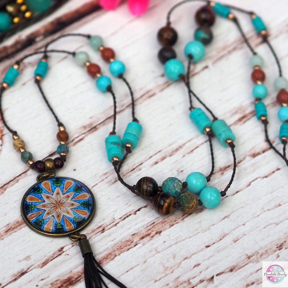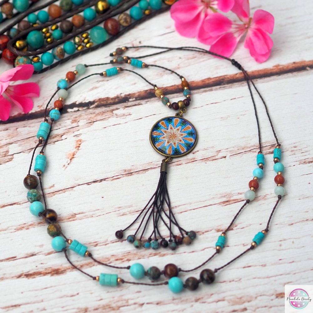 Бохо намисто Мандала Мир бірюза амазоніт хризокола китиця HIPPI MD