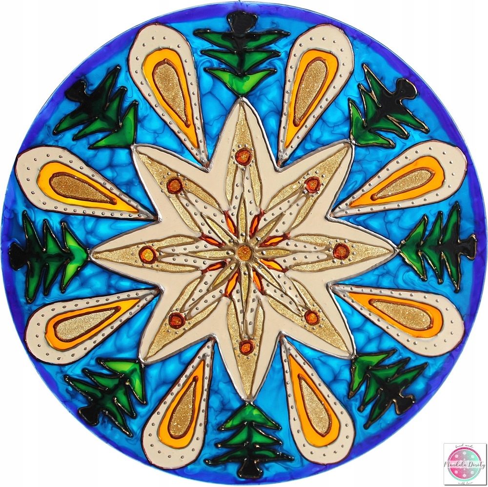 Оригинальная мандала Дороты, нарисованная вручную на стекле, перенесенная на украшения.
