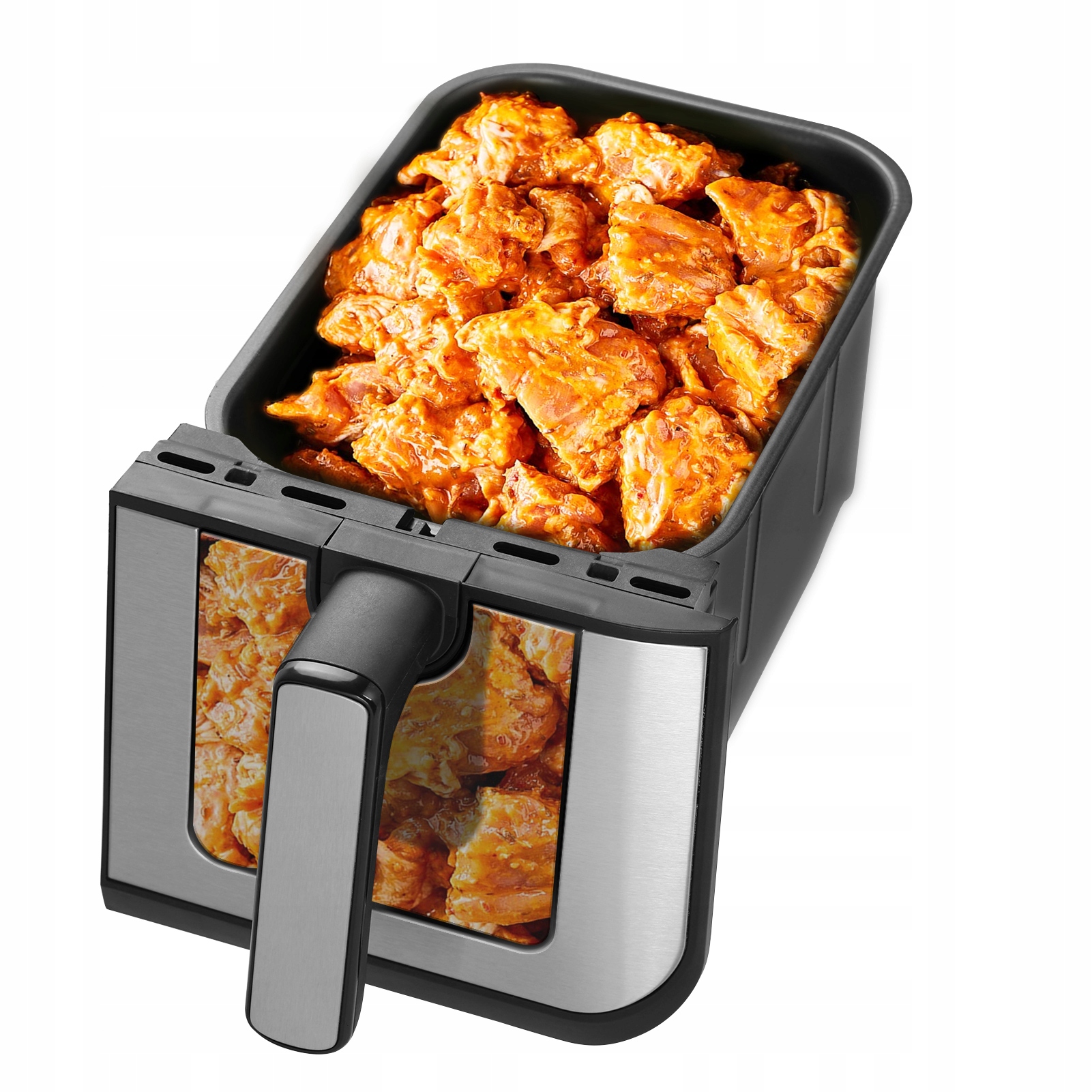 Умный сенсорный экран и смотровое окошко: Двойной горячий воздух фритюрницы оснащены чувствительным светодиодным дисплеем, который прост в использовании и настройке. Очень большие окна с подсветкой позволяют следить за состоянием продуктов внутри, не допуская их недоваривания или переваривания.
