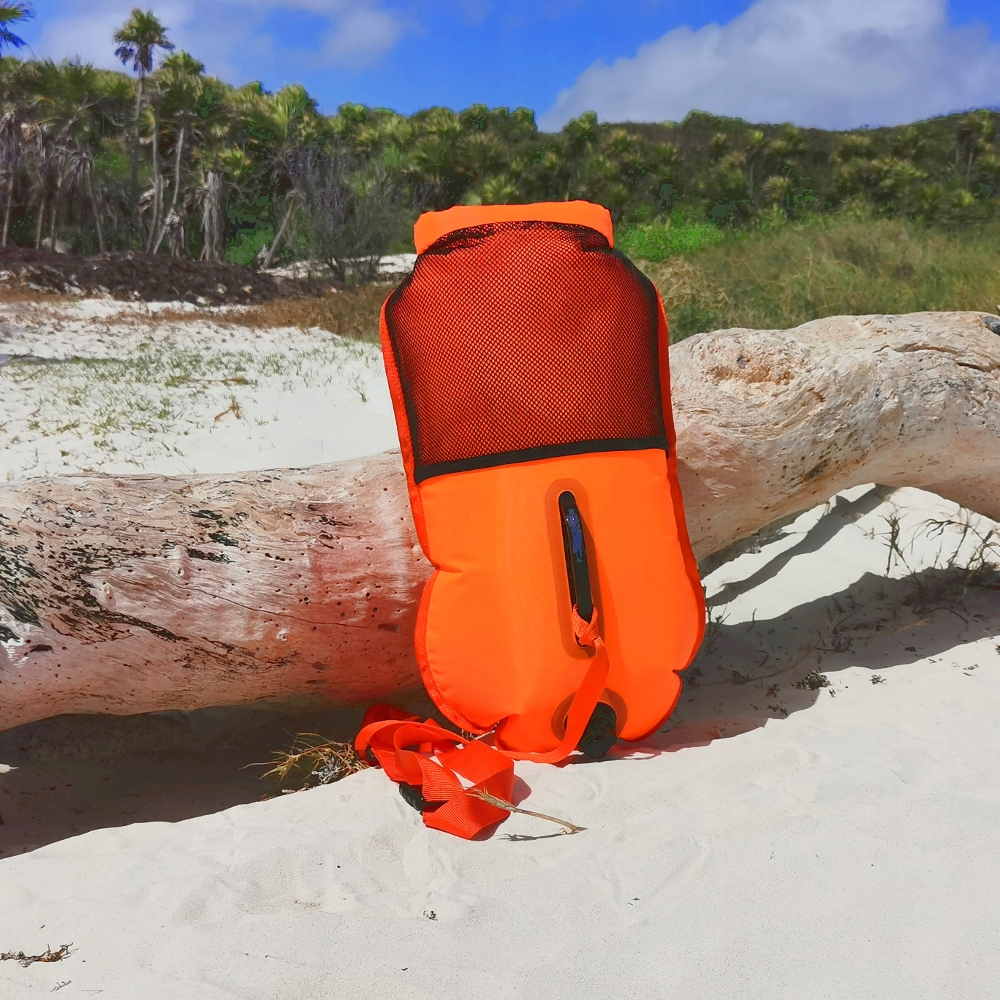 Надувной спасательный буй Safe4sport, модель MasterSwimmer Active, с сухой камерой и дополнительным внешним карманом.