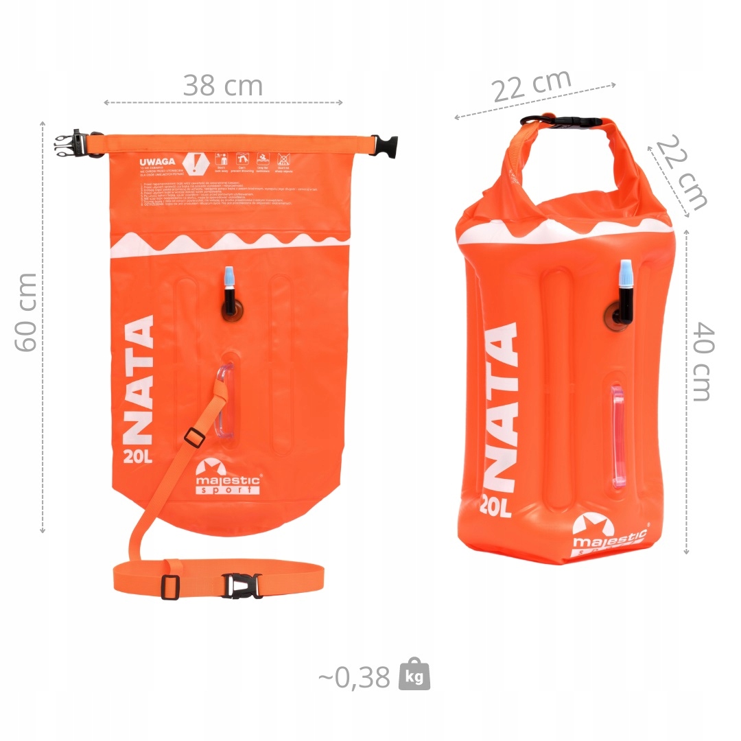 Bojka asekuracyjna dmuchana do pływania sucha kieszeń Majestic Sport