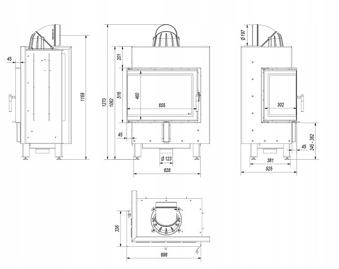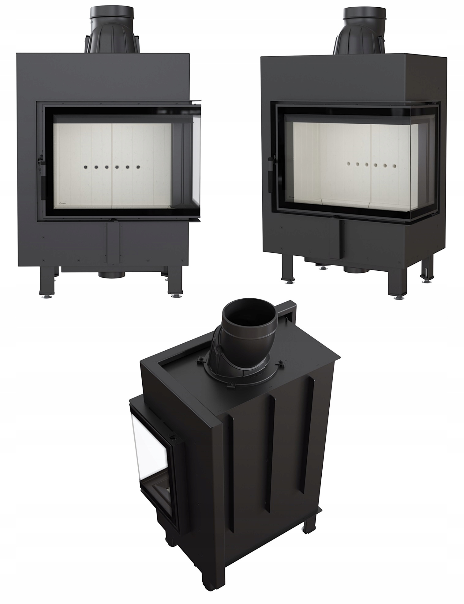 Стальная воздухокаминная топка с термотеком Люси 12 левая или правая BS (стыковое стекло без импоста) + воздухозаборник, мощность 15кВт