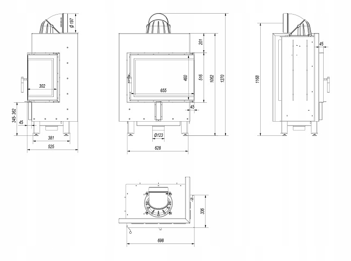 - Диаметр выхода выхлопных газов (мм): 200