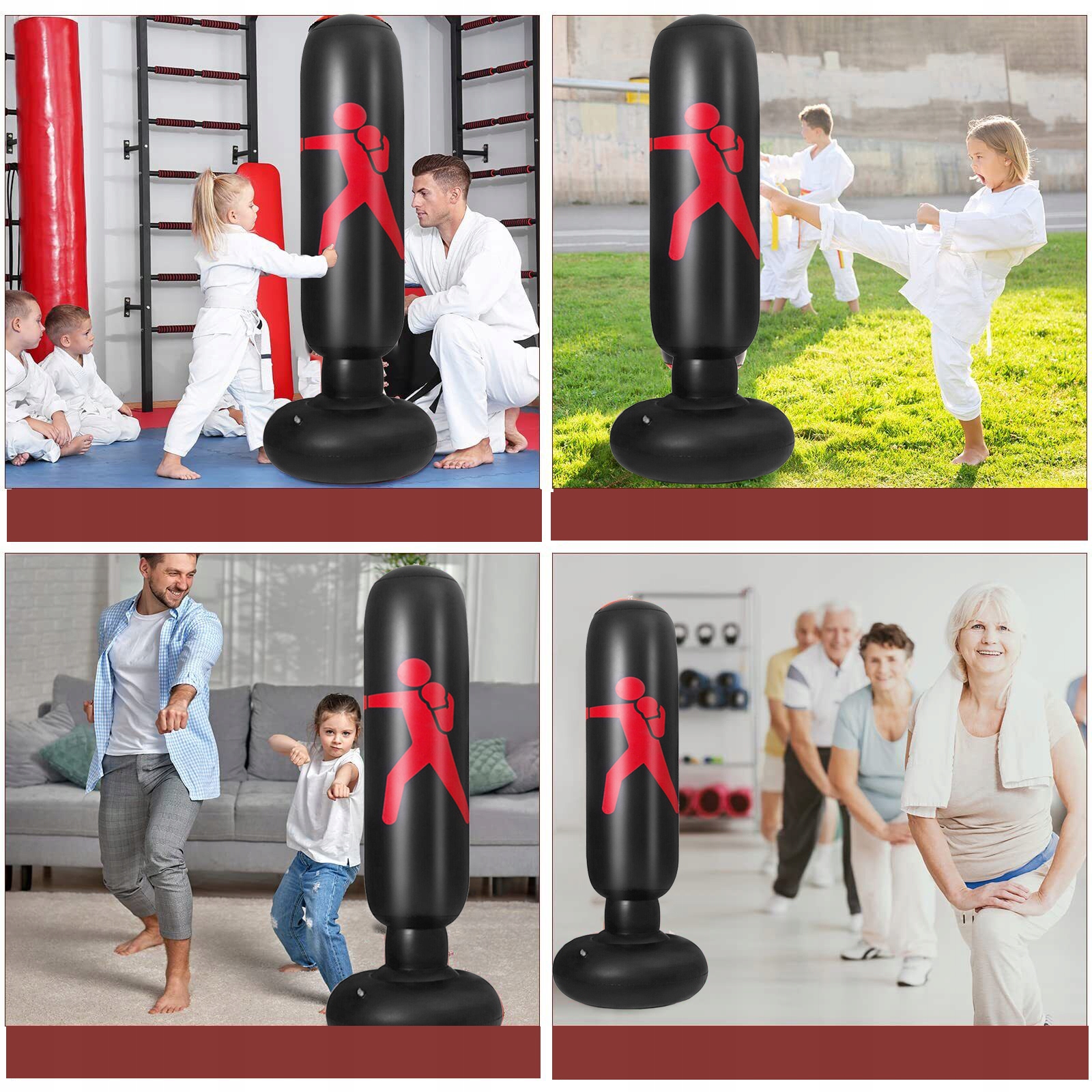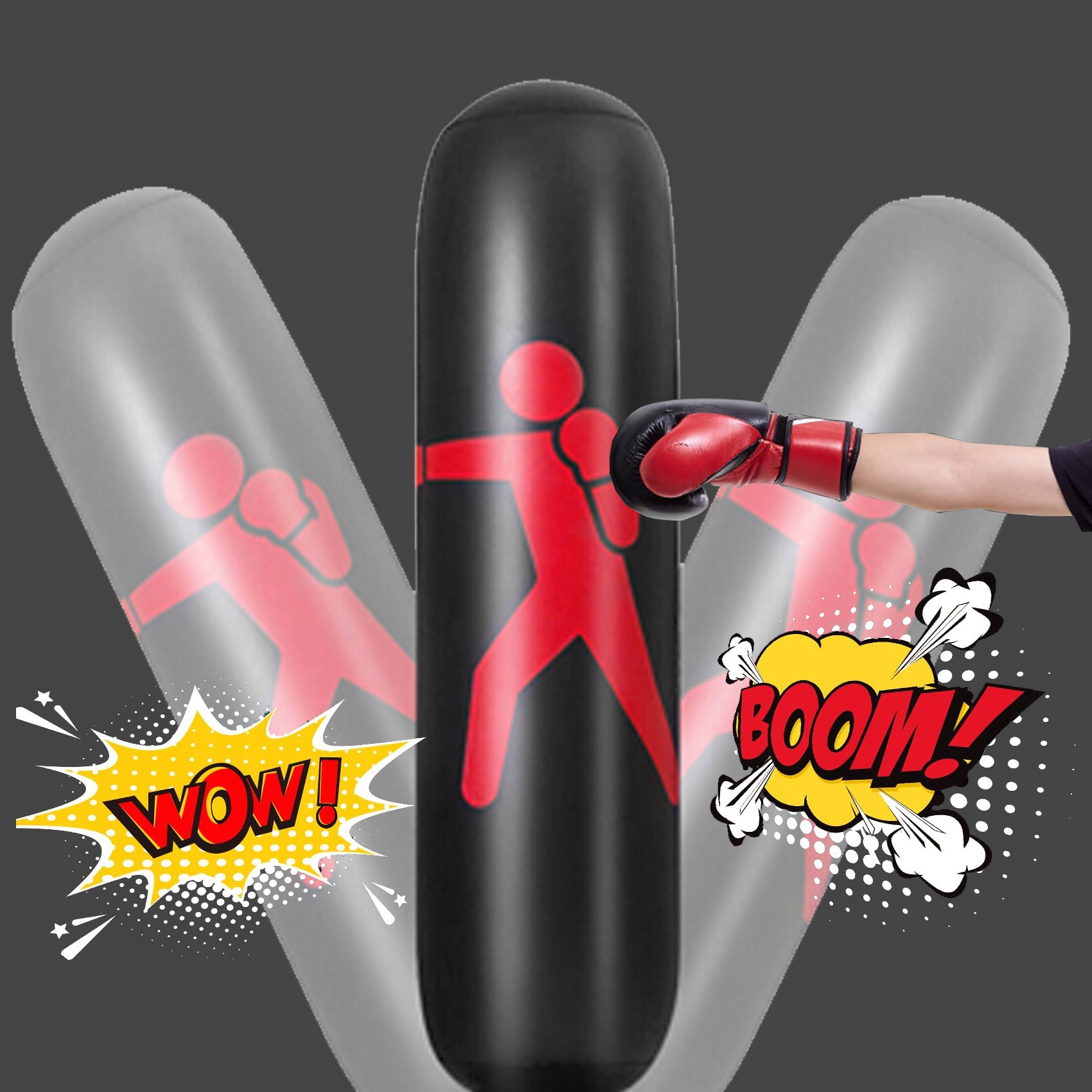 Боксерское оборудование изготовлено из высококачественного, экологически чистого ПВХ , которое является толстым, без запаха, долговечного и растяжения. Постоянная боксерская сумка проверяется на отражение и быстро отражается после удара/удара. Песочные мешки также мягкие и безопасные для маленьких детей.