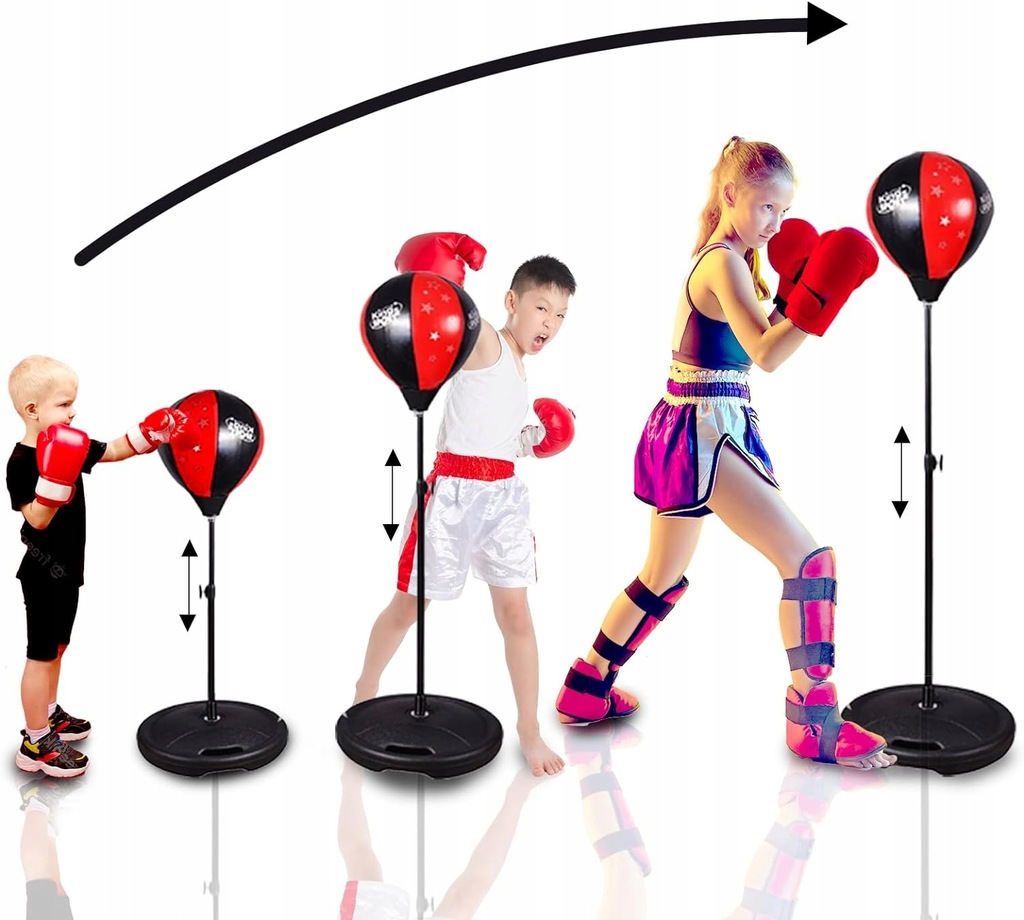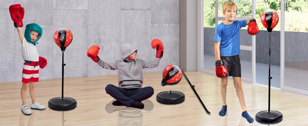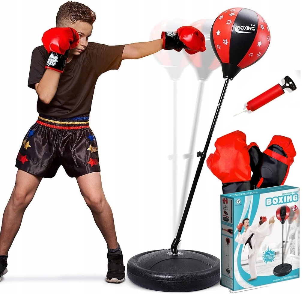 боксерская груша + регулируемые перчатки на шесте, и эта весна подключена к основанию, которая предотвращает перемещение оборудования после удара. Боксерская груша перекачивается. Это идеально улучшает моторные навыки и скорость ребенка, не обременяя позвоночник. - Boxing Pear декорированный - это привлекательные узоры, что увеличивает интерес ребенка. дети.