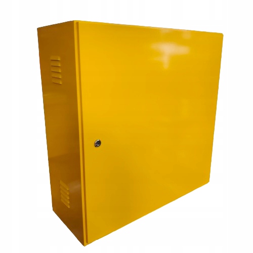 Газовый ящик желтого цвета RAL 1021. Монтажный шкаф изготовлен из оцинкованного листа толщиной 1 мм с порошковым покрытием внешняя фасадная краска. Прочное качество изготовления защищает от коррозии и солнечных лучей.