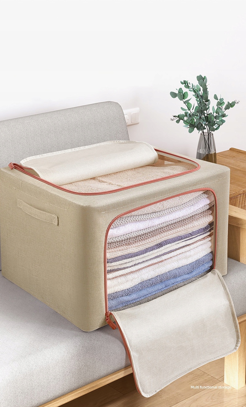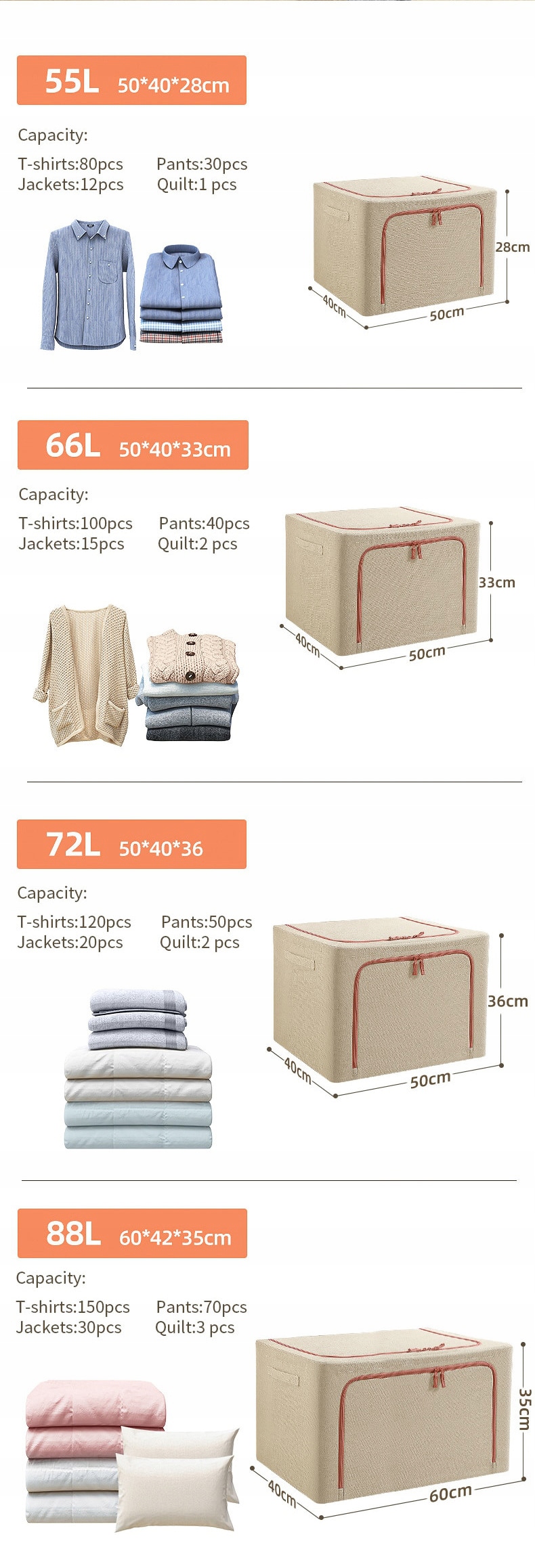 Наш контейнер для одежды изготовлен из высококачественной ткани из хлопка и конопли без запахаи. Он устойчив к влаге и пыли, что обеспечивает вентиляцию и защищает хранящиеся предметы.
