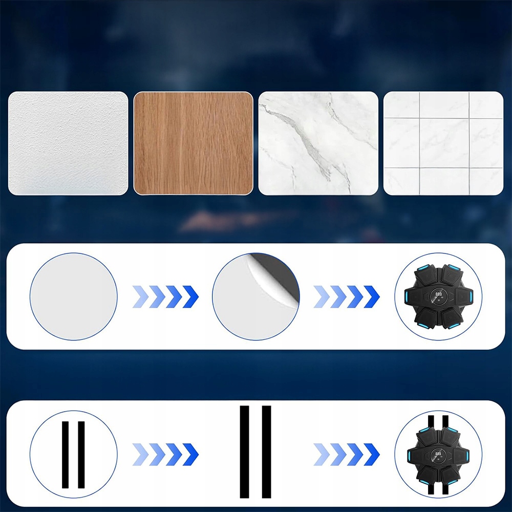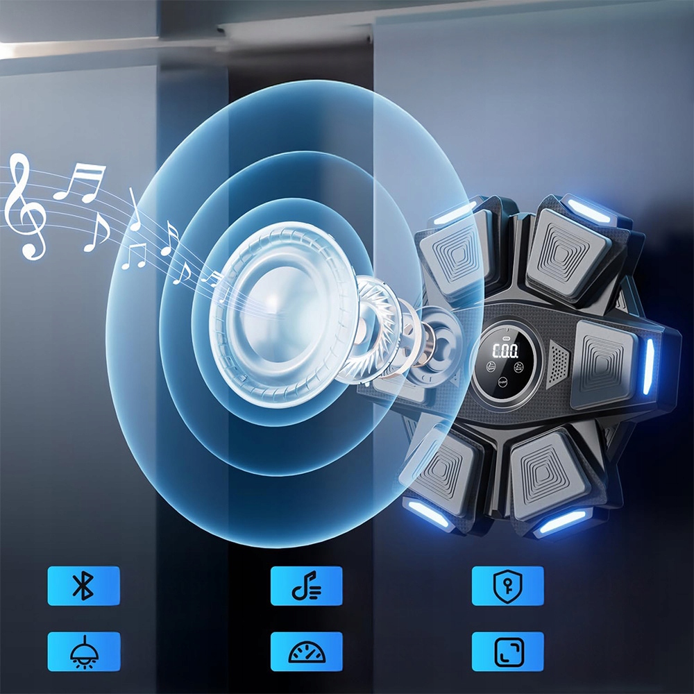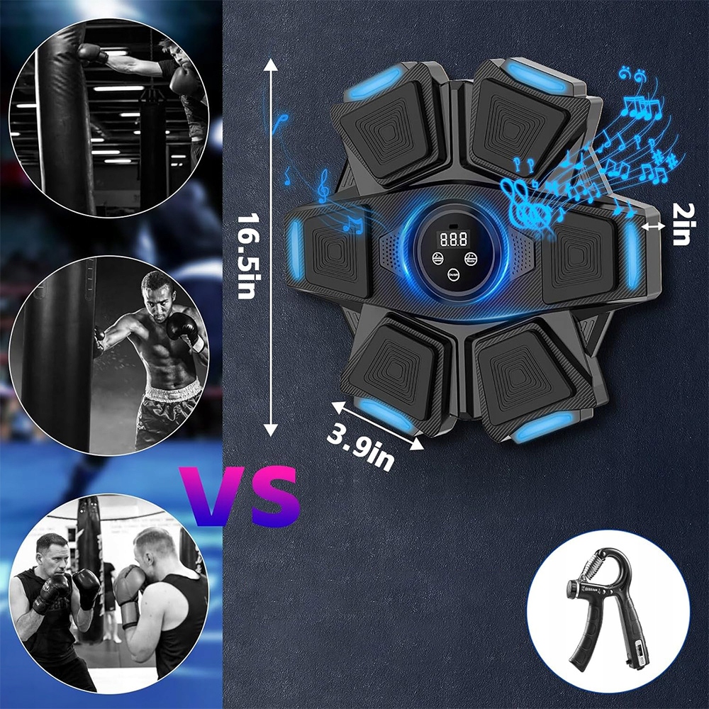 монтируется на стене. Музыкальный боксерский щит оснащен профессиональным, высококачественным боксерским перчатками, которые защищают ваши руки во время упражнений. Профессиональный пространственный звук стерео может играть в вашу любимую музыку, а прохладные огни вспыхивают в ритме, стимулируя физическую жизненную силу, энтузиазм освещения и делая каждое упражнение самым большим удовольствием.