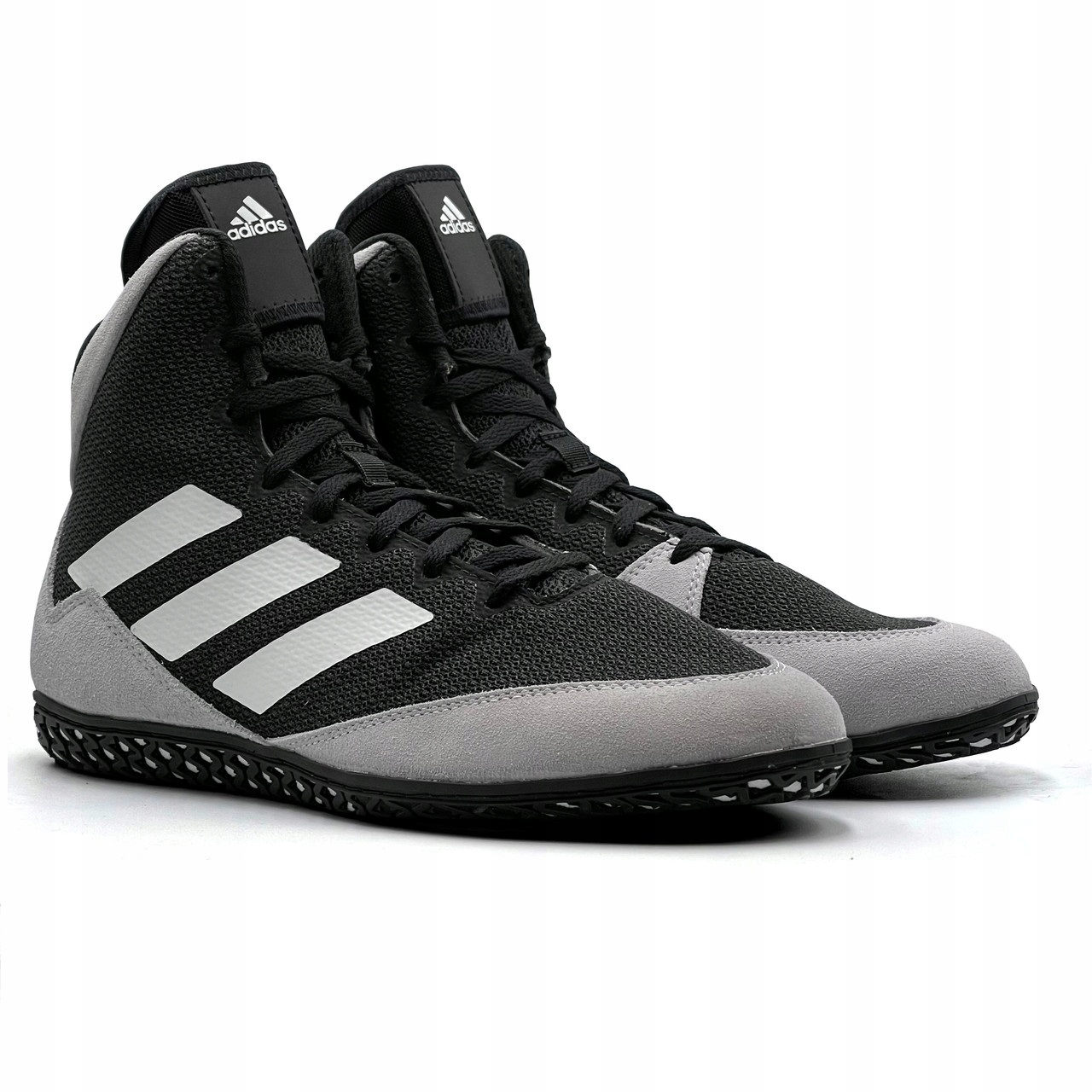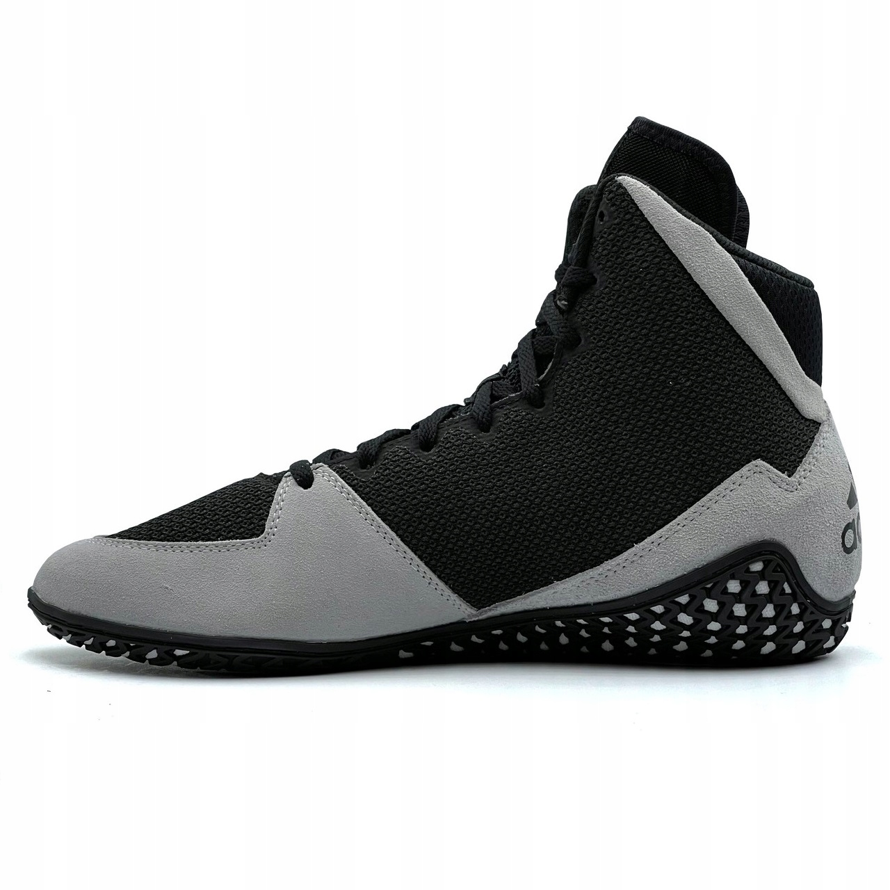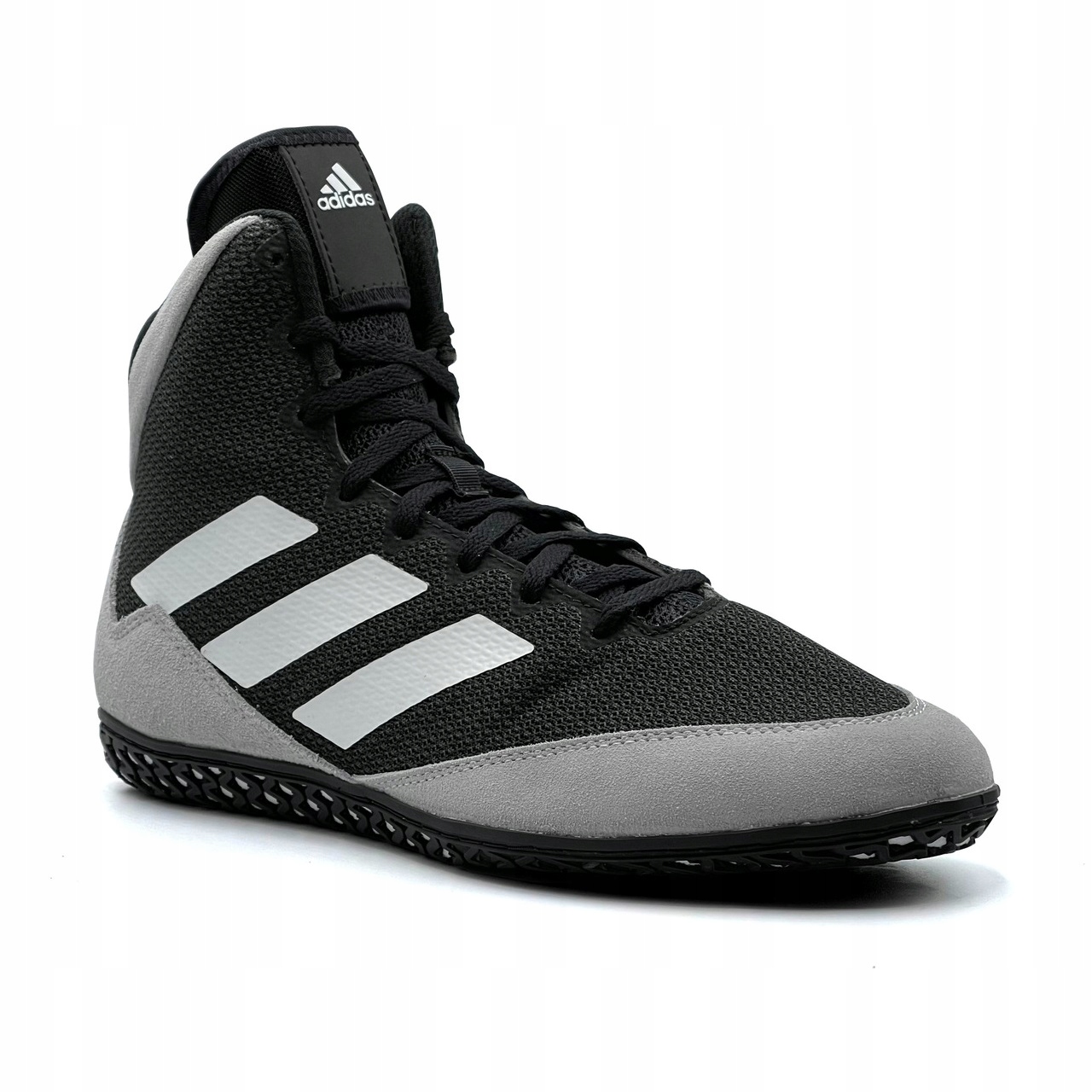 Adidas представляет новое поколение проверенной модели Adidas Mat Wizard! Улучшенный верх стал намного жестче, обеспечивая еще лучшую стабилизацию голеностопного сустава. Пластиковые панели заменены на замшу и качественный жесткий сетчатый материал. Резиновая подошва обеспечивает превосходное сцепление с ковриком под любым углом. Атакуйте быстро, не беспокоясь о потере устойчивости во время динамичных движений, благодаря надежному Mat Wizard 5!