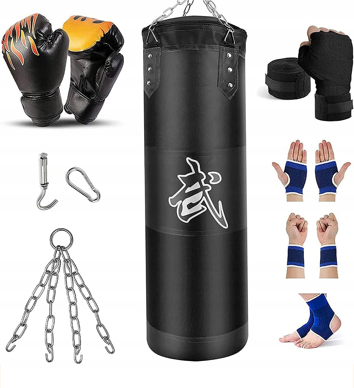 【Защитные аксессуары】 Для лучшей защиты, бокса и ударов ногами в комплект входят боксерские перчатки, бинты, сумка-вешалка. , 4-слойная стальная цепь, карабин, защита запястья, защита руки и защита суставов. Кроме того, амортизирующая набивка из пеноматериала выдерживает самые сильные удары дома или в тренажерном зале и предотвращает травмы во время бокса и ударов ногами.
