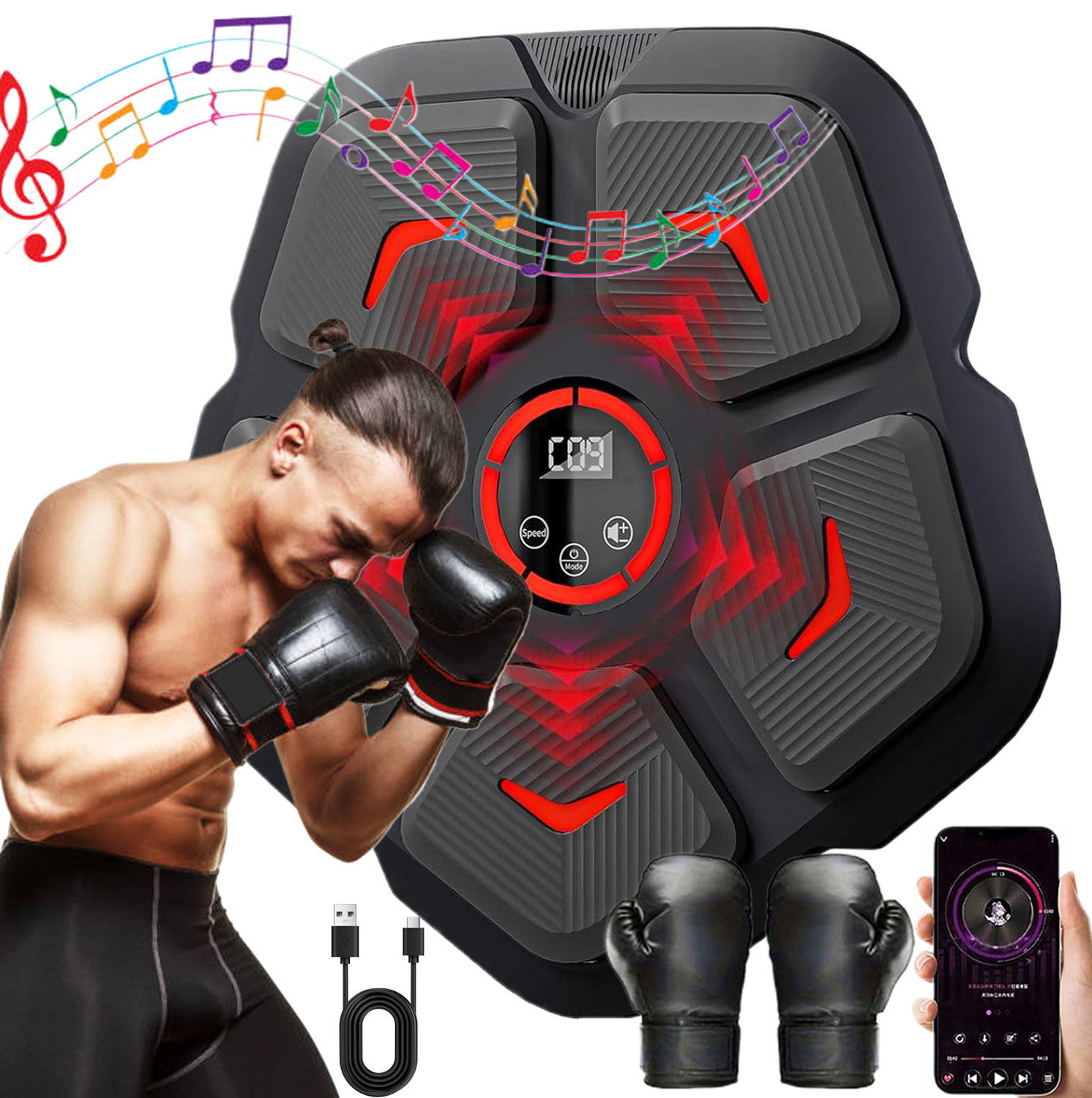 Погрузитесь в удовольствие от тренировок с нашим интеллектуальным музыкальным боксерским тренажером! Танцуйте под любимую музыку во время бокса, чтобы получить энергичные и увлекательные тренировки. Во время тренировки по боксу светятся 2 разных индикатора.