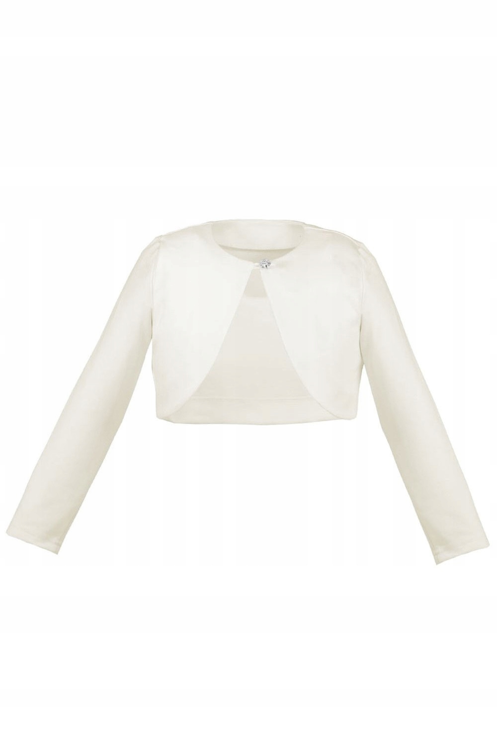 Ткань пунто, из которой изготовлено болеро, отличается прочностью и гибкостью. Благодаря своей структуре не мнется.