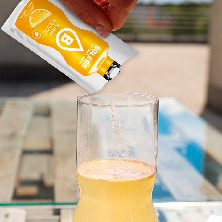 Один пакетик bolero 9 g достаточно, чтобы подготовиться от 1,5 к литр напитка - в зависимости от того, насколько сильным должен быть вкус. Меньшее разведение дает интенсивный, фруктовый напиток , а больше воды - это более мягкое освежение . Вы можете настроить количество воды в соответствии с вашими потребностями.
