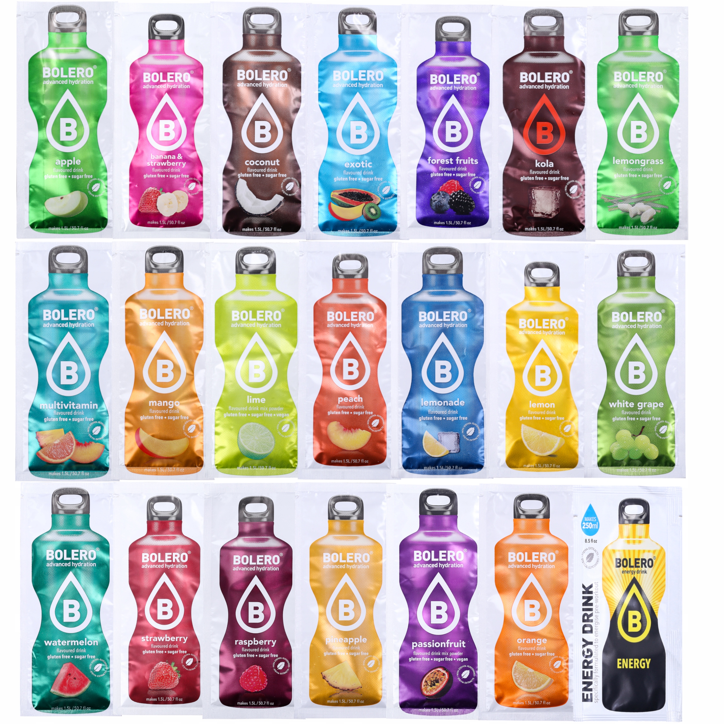 Используя напитки со вкусом Болеро и любимые натуральные добавки, вы можете приготовить свой собственный напиток. Все, что вам нужно, это добавить освежающие фрукты и мяту, чтобы получить натуральный и полезный напиток. Разнообразие вкусов и полезный состав означают, что напиток «Болеро» используют не только спортсмены, каждый найдет среди широкого спектра вкусов напитков «Болеро» свой любимый фруктовый вкус.