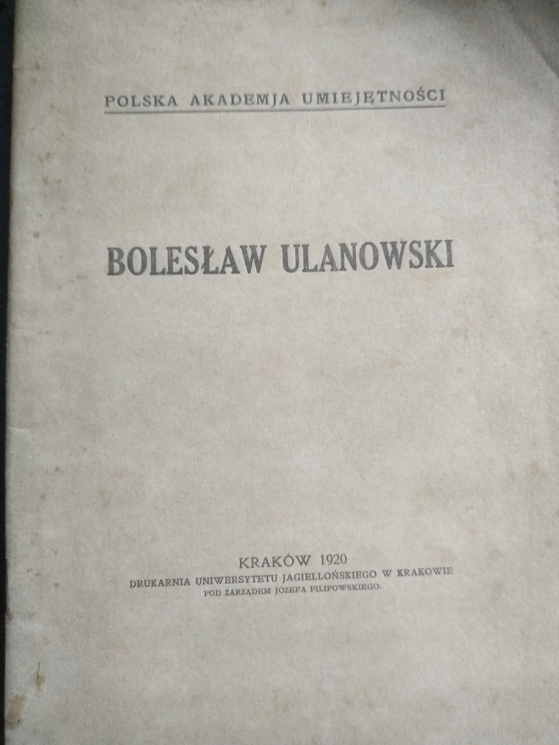 Bolesław Ulanowski. Sesja żałobna. 1920