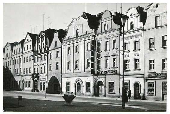БОЛЕСЛАВЕЦ :: Исторические доходные дома на Рыночной площади ::: старая открытка, не бывшая в обращении, но с прикрепленной маркой, меньшего формата