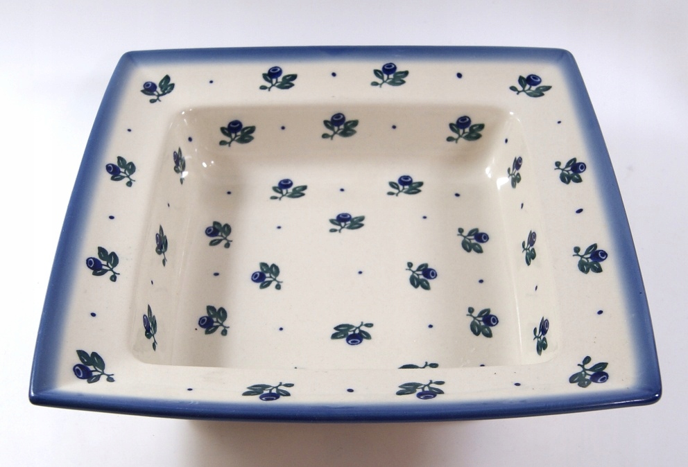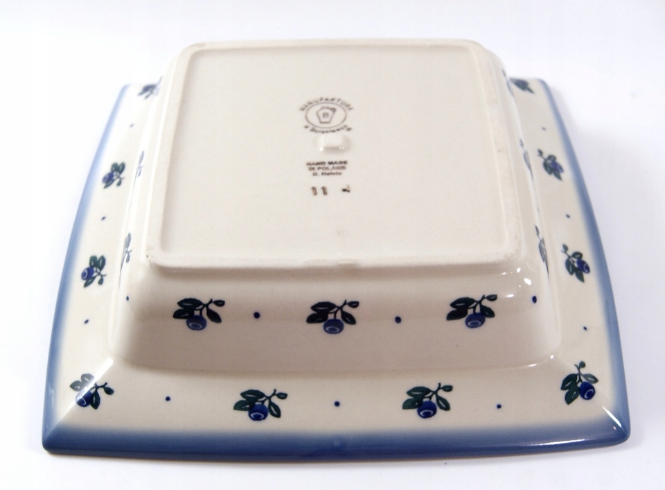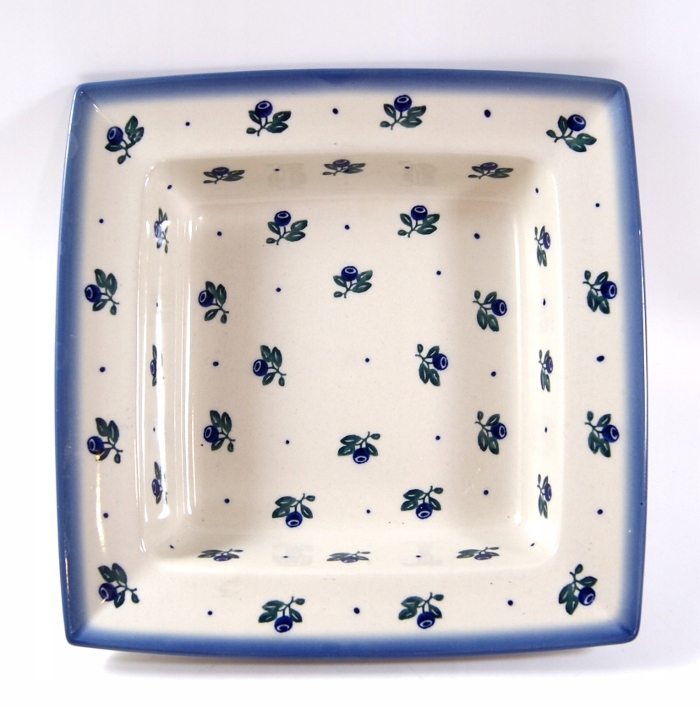 Объект аукциона - тарелка от Болеславица, крема, украшенная черникой.