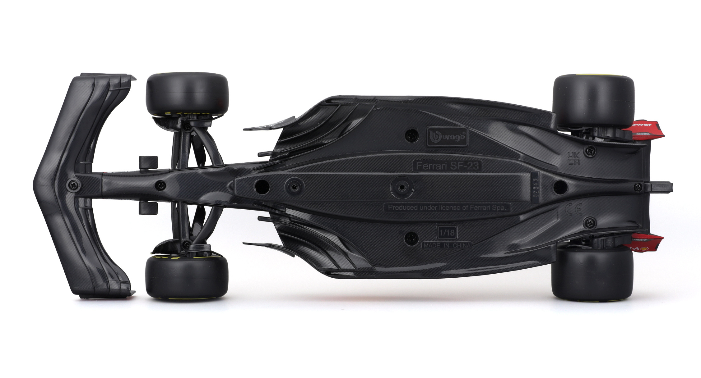 SF-23 отличается инновационной конструкцией переднего спойлера и использованием так называемого S-канал в боковых секциях для улучшения воздушного потока. Это доказывает передовые технологические решения, которые Ferrari внедрила для достижения отличных характеристик и аэродинамики.