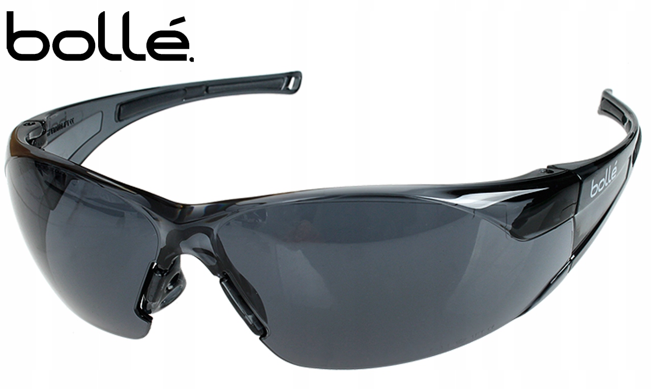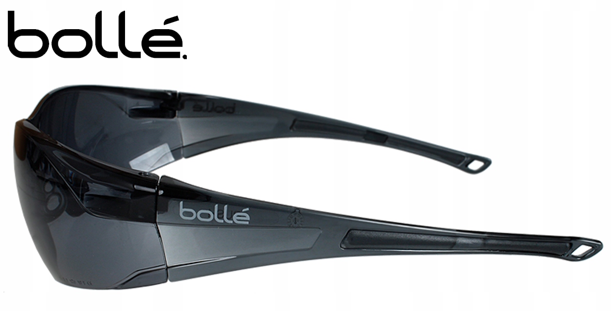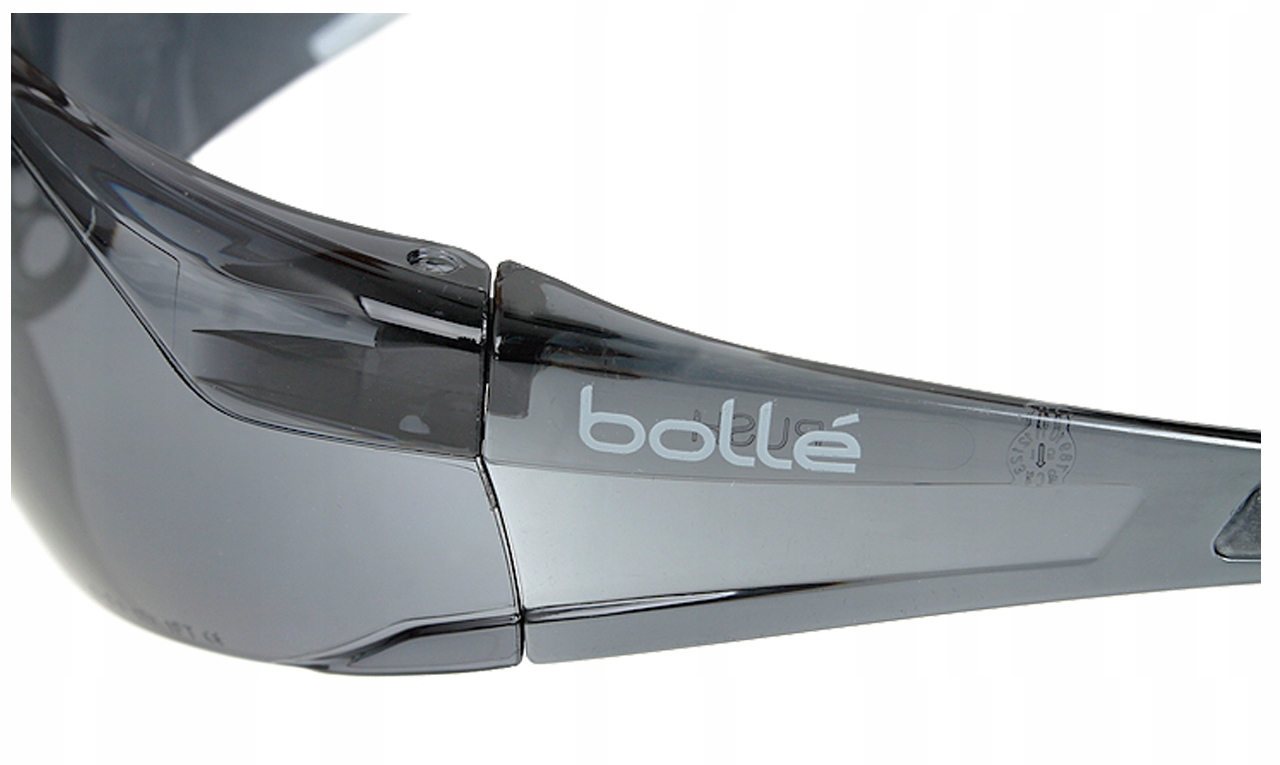 Очки защитные тонированные BOLLE RUSH Smoke PC ASAF Cord с механической прочностью стекла для защиты глаз от осколков, рикошетов и других попадающих предметов в соотв. класс F (предмет массой 0,86 г, движущийся со скоростью 45 м/с) и Т (горячие частицы).