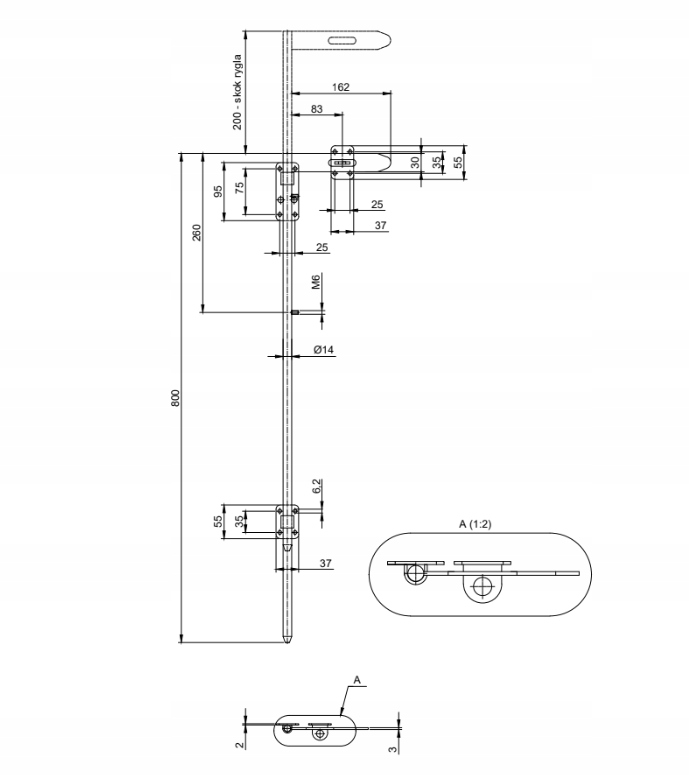 Болт двери затвора с длинной стальной ручкой стальной 800 мм