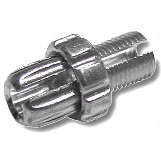 Регулировочный винт тормозного троса изготовлен из серебристого алюминия. Винт используется для тормозного рычага и ввинчивается в корпус рычага, а затем внутрь него вставляется внешний кожух и тормозной трос. Вкручивая или выкручивая этот винт из рычага, мы регулируем соответствующее натяжение тормозного троса.