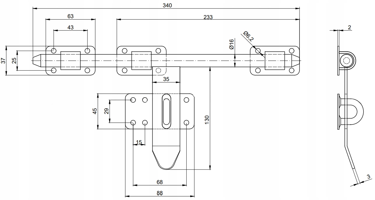 БОЛТ 340ММ ГАРАЖНЫЙ БАЛТЕР ДЛЯ ВОРОТ С НАВЕСНЫМ ЗАМКОМ