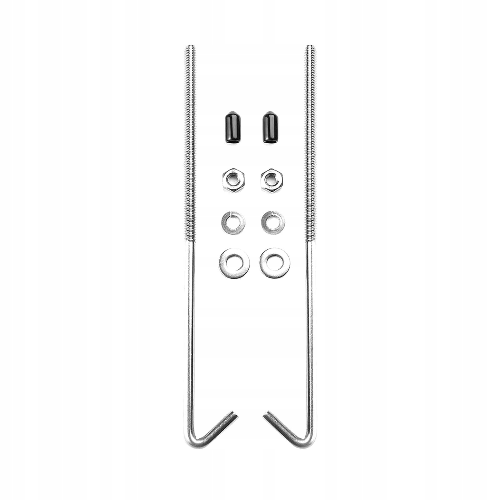 [Содержимое упаковки]: 2 J-образных крючка, 2 шестигранные гайки, 2 пружинные шайбы, шайбы и 2 резиновых защитных колпачка.