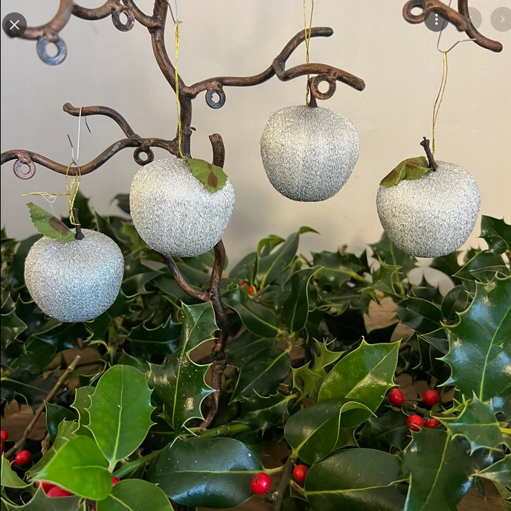 BOMBKI JABŁKA ZAWIESZKI NA CHOINKĘ BROKATOWE ozdoby JABŁUSZKA 9szt Srebrne