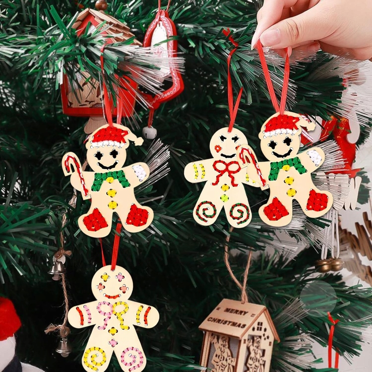 Креативный набор деревянных украшений для вышивания – отличная идея для новогодних занятий рисованием с детьми. В набор входят четыре основы с отверстиями: два снеговика и два пряника, которые можно украсить с помощью входящих в комплект цветных ниток и пластиковых иголок. Все дополняется веревочками для подвешивания, благодаря которым готовые украшения можно повесить на елку или в детскую комнату.