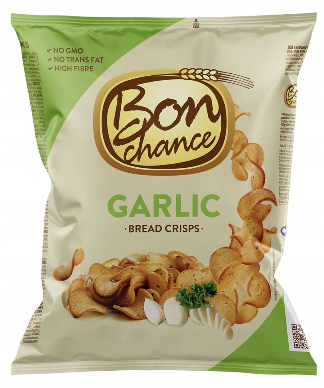 Хлебные чипсы с чесноком Bon Chance — это насыщенная чесночная закуска для любителей выразительного вкуса. Выпечка из смеси ржаной и пшеничной муки, обогащенная специями, луком и петрушкой. Благодаря высокому содержанию клетчатки, без ГМО и трансжиров, идеален в качестве более здоровой альтернативы классическим чипсам. Их можно использовать как дополнение к соусам, пиву или как самостоятельную закуску.