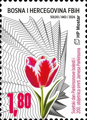 Bośnia Mostar 2024 Znaczek ** zdrowie medycyna Parkinson farmacja kwiaty