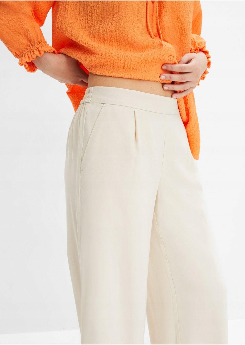 Bonprix spodnie eleganckie damskie proste długa beżowy