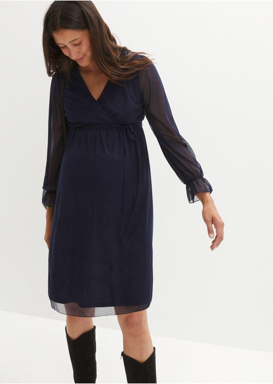 Bonprix sukienka ciążowa przed kolano długi rękaw niebieski