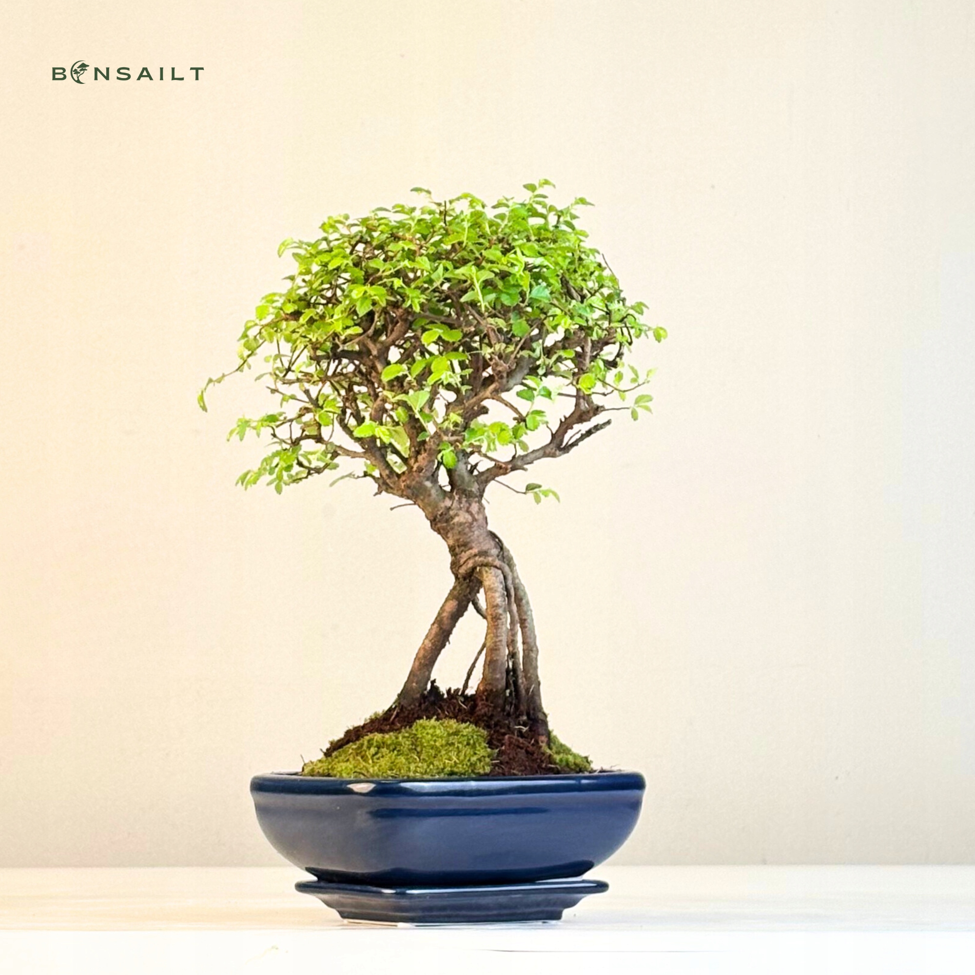 Дерево бонсай из китайского вяза с открытыми корнями — идеальный выбор для начинающих любителей бонсай, которые ищут привлекательное, но устойчивое и нетребовательное дерево. Ulmus parvifolia исключительно устойчив к болезням, имеет крепкий ствол, густую листву и хорошо переносит кратковременную нехватку воды. Поэтому он также подойдет людям, которые иногда забывают о поливе.