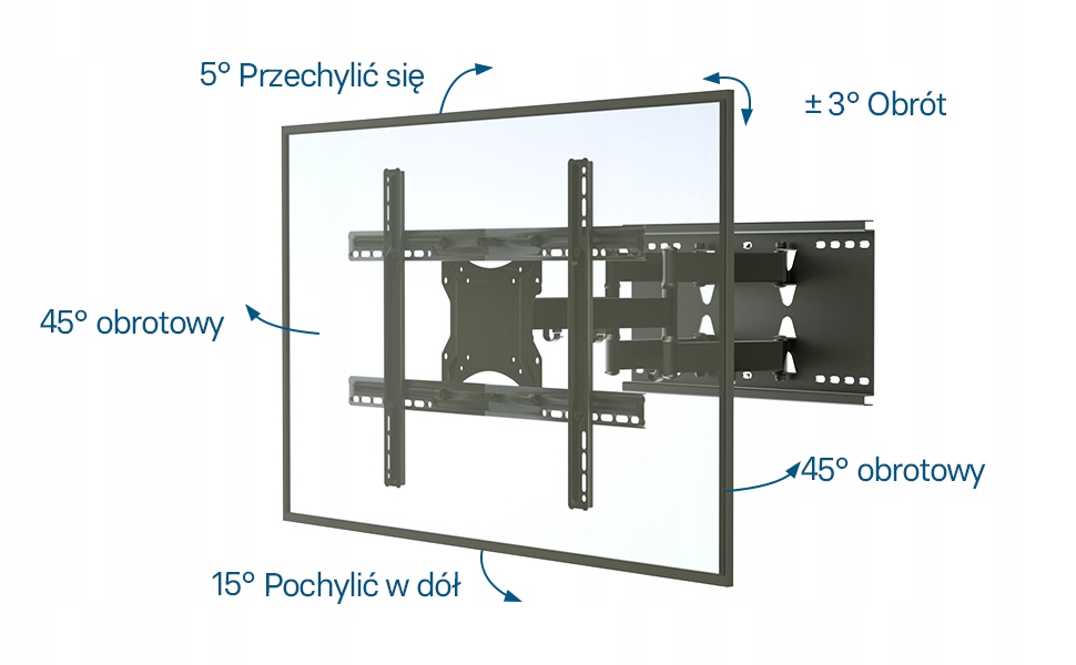 Сверхпрочное настенное крепление для телевизора с двойным кронштейном разработано с учетом долговечности и универсальности. Его ультратонкий дизайн обладает уникальной особенностью, которая позволяет телевизору складываться на стене на расстояние до 60 мм при выдвижении, а затем выдвигать его наружу на расстояние до 360 мм, сохраняя центральное положение, позиционируя и поворачивая его в любом направлении. Чрезвычайно прочный двойной кронштейн с максимальной нагрузкой 65 кг, идеально подходящий для крепления телевизора на плоской стене или в углу. Благодаря этому открывается прекрасный вид в спальне, гостиной, детской комнате и на кухне.
