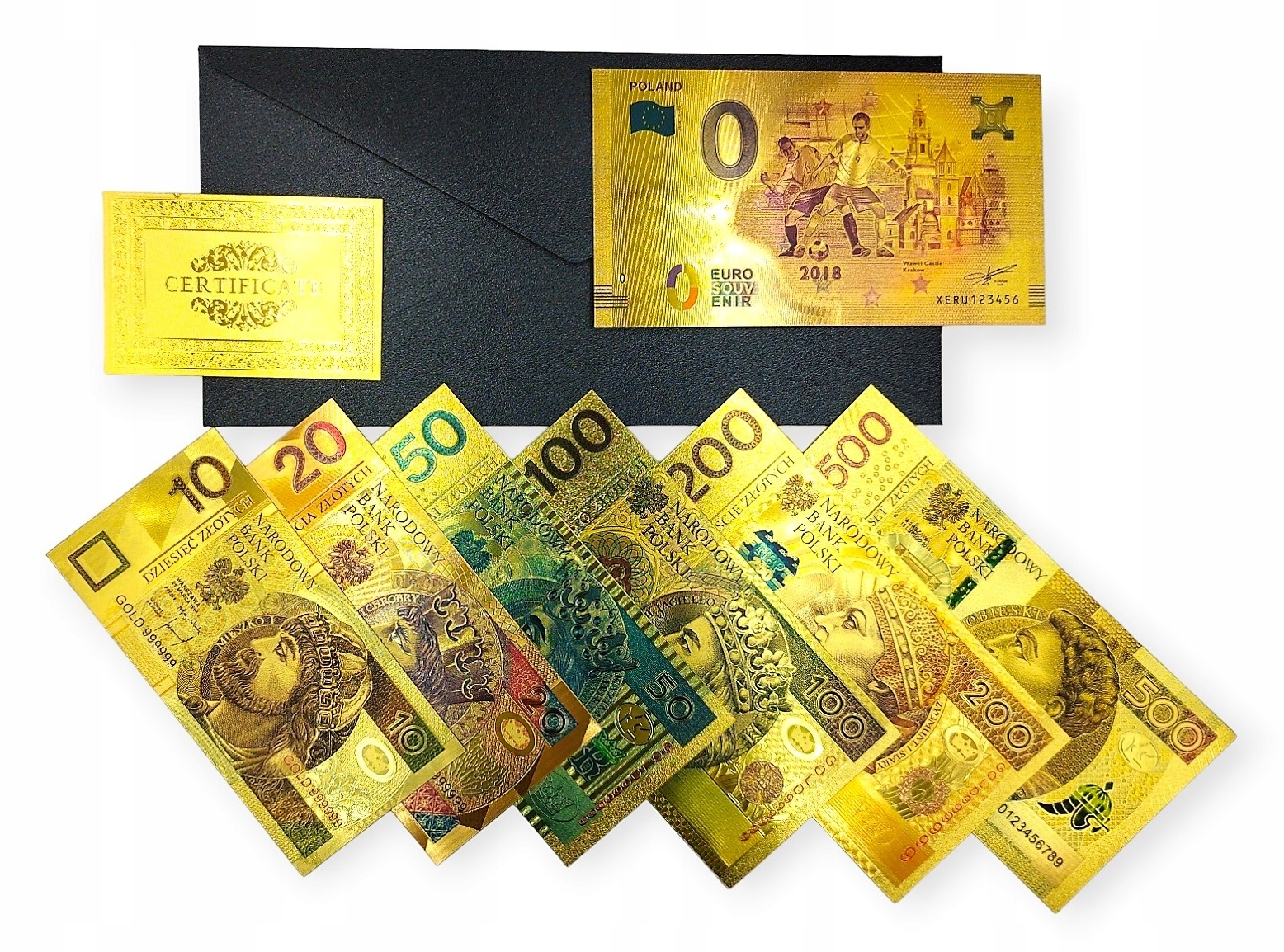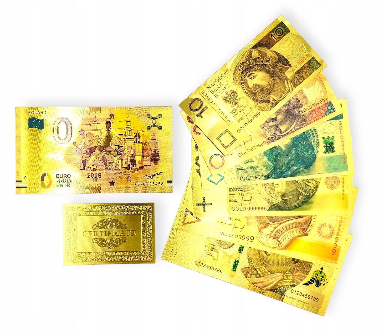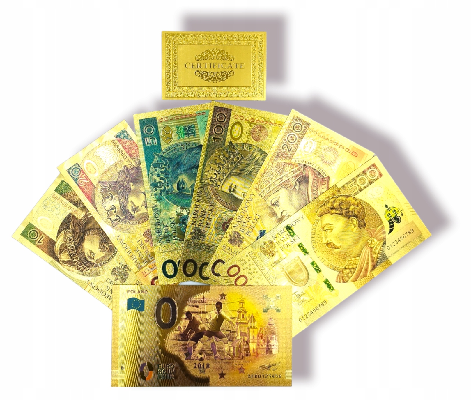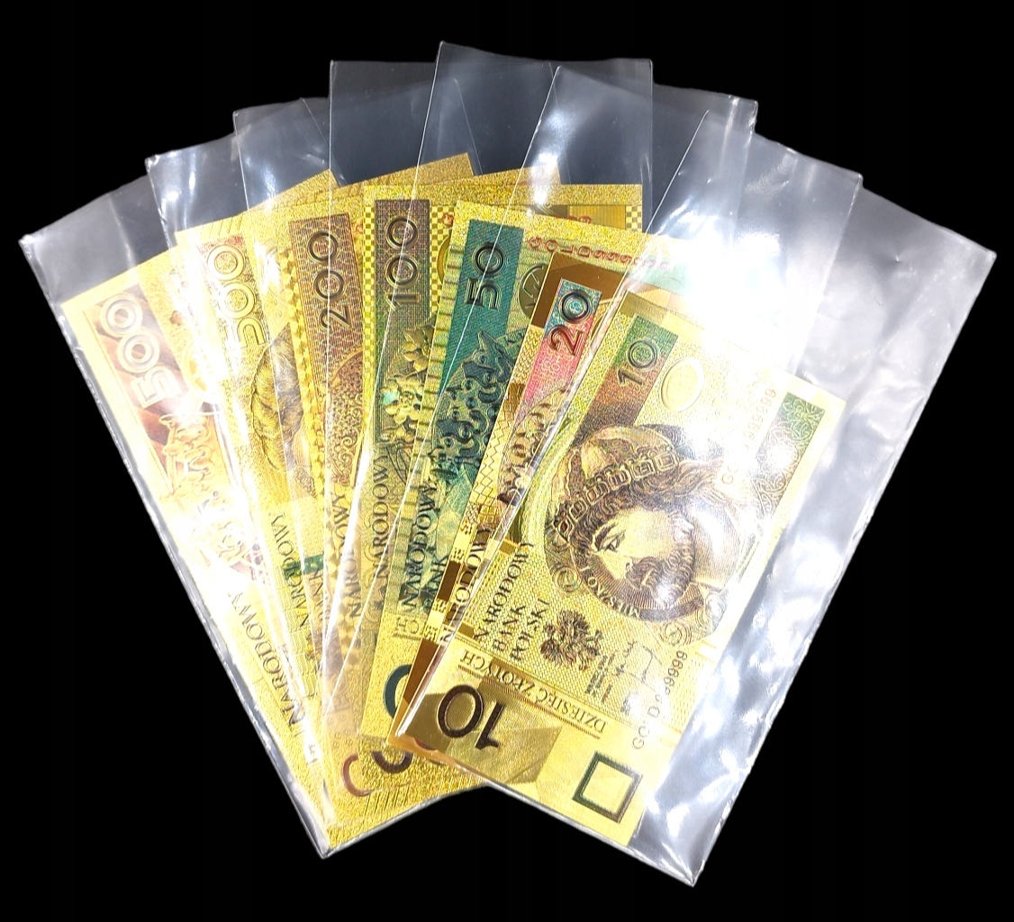 Коллекционный набор польских позолоченных банкнот из ПВХ