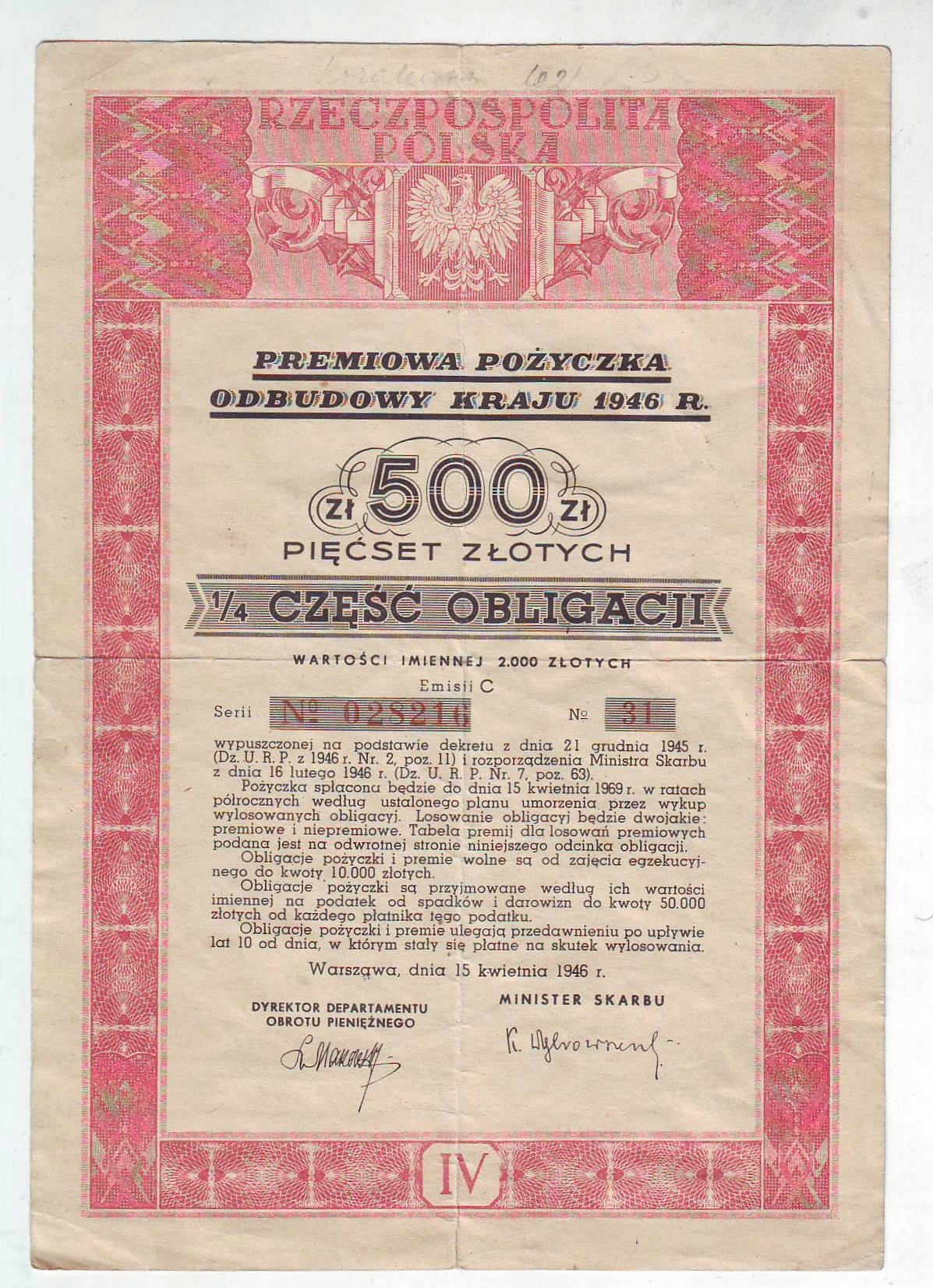 Бонусный кредит на реконструкцию страны 1946 года, 1/4 облигаций
