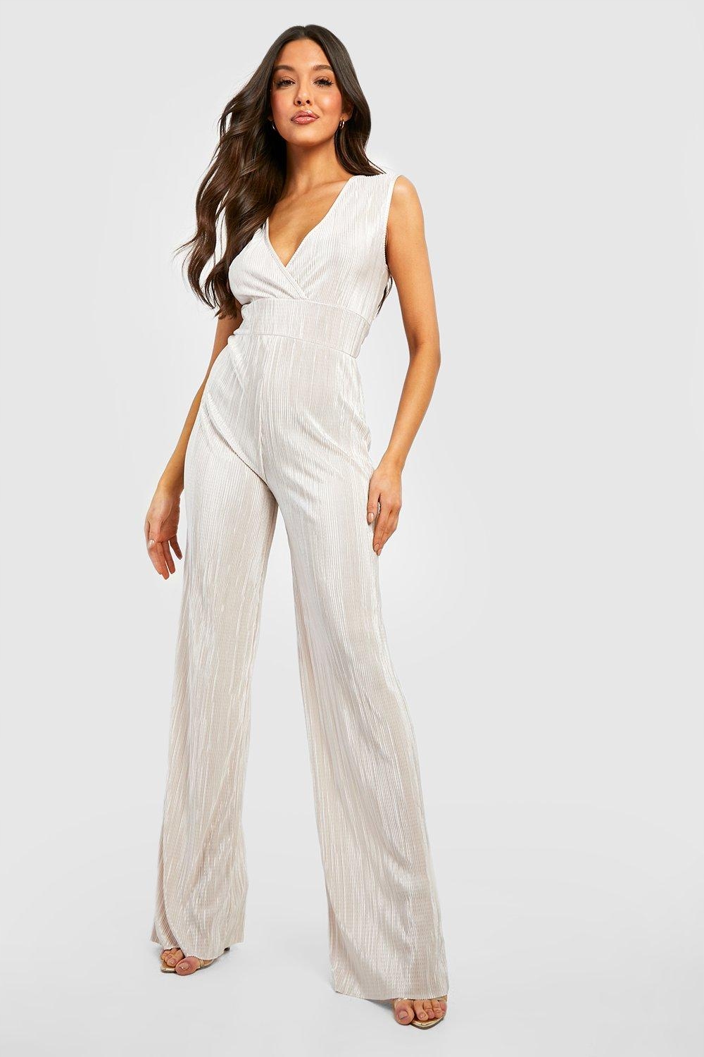 Boohoo Light Beige Плиссированный комбинезон (38)