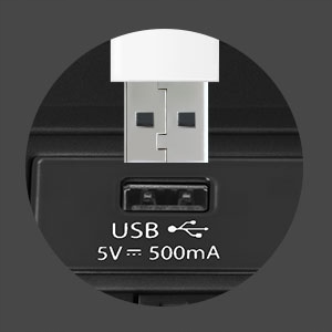 Сохраните свою музыкальную коллекцию удобно на USB -памяти и воспроизводите ее напрямую на устройстве. Это включено интегрированный USB -порт.