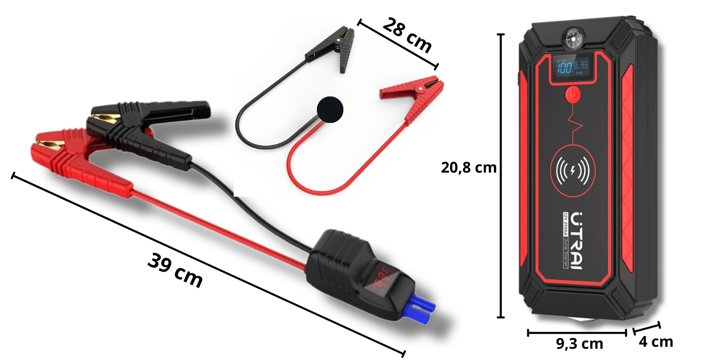 - Мощный пуск: UTRAI имеет пиковое пусковое 2500А, что позволяет < b >быстрый и эффективный запуск автомобиля12 В (бензин до 8 л и дизель до 6,5 л)