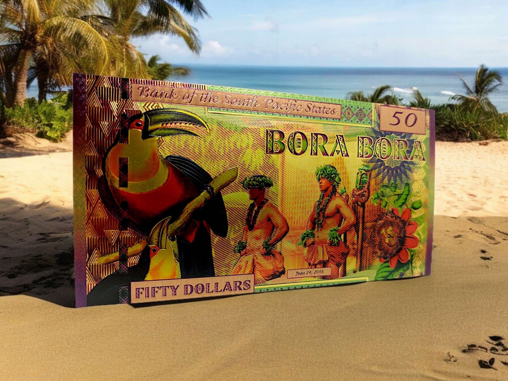 Красивая коллекционная банкнота номиналом 50 долларов BORA BORA.