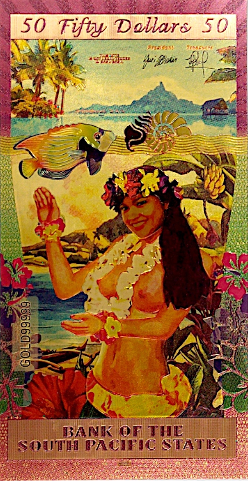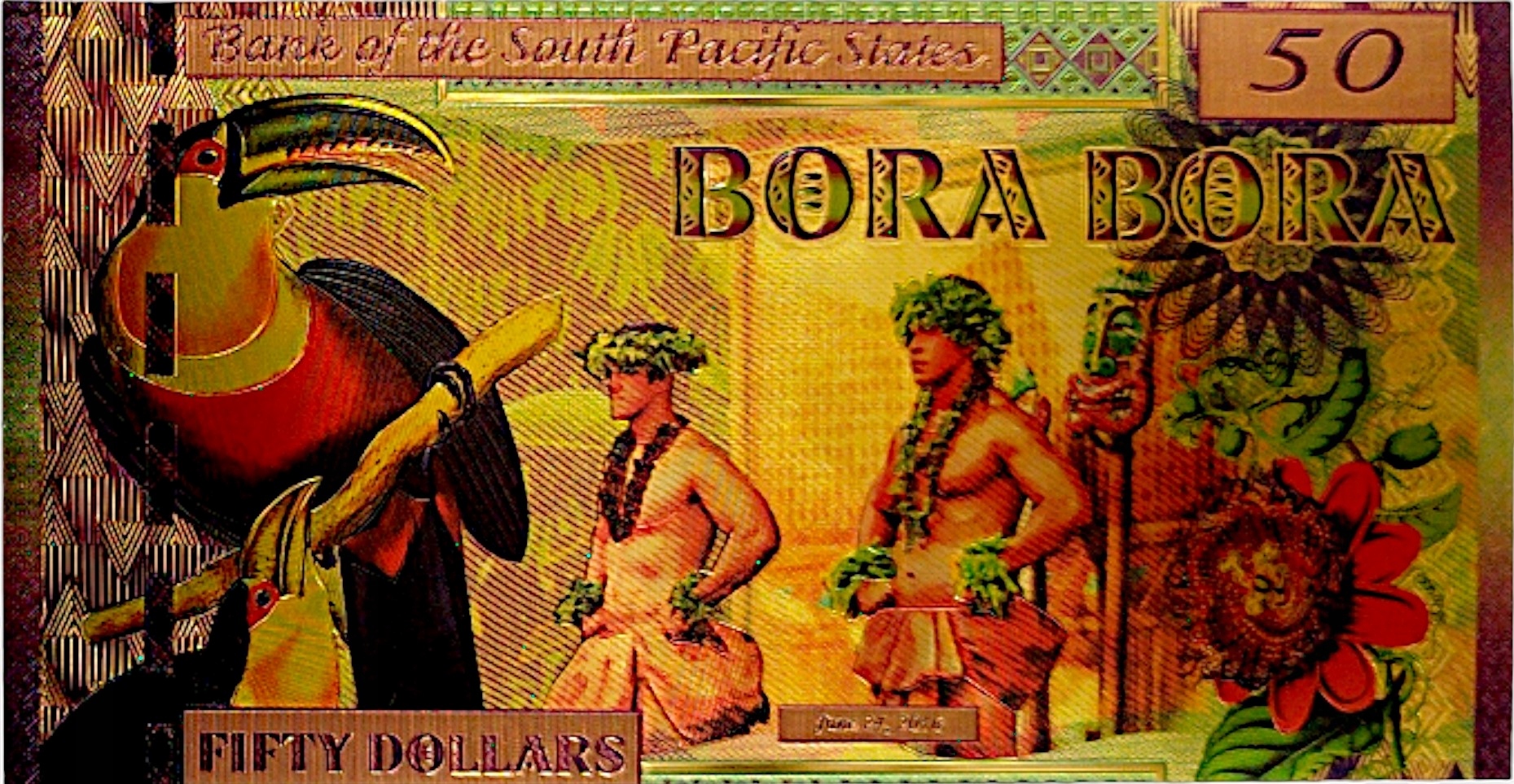 BORA BORA 50 ДОЛАРІВ Красива позолочена банкнота Екзотична перлина ДЛЯ КОЛЕКЦІЇ