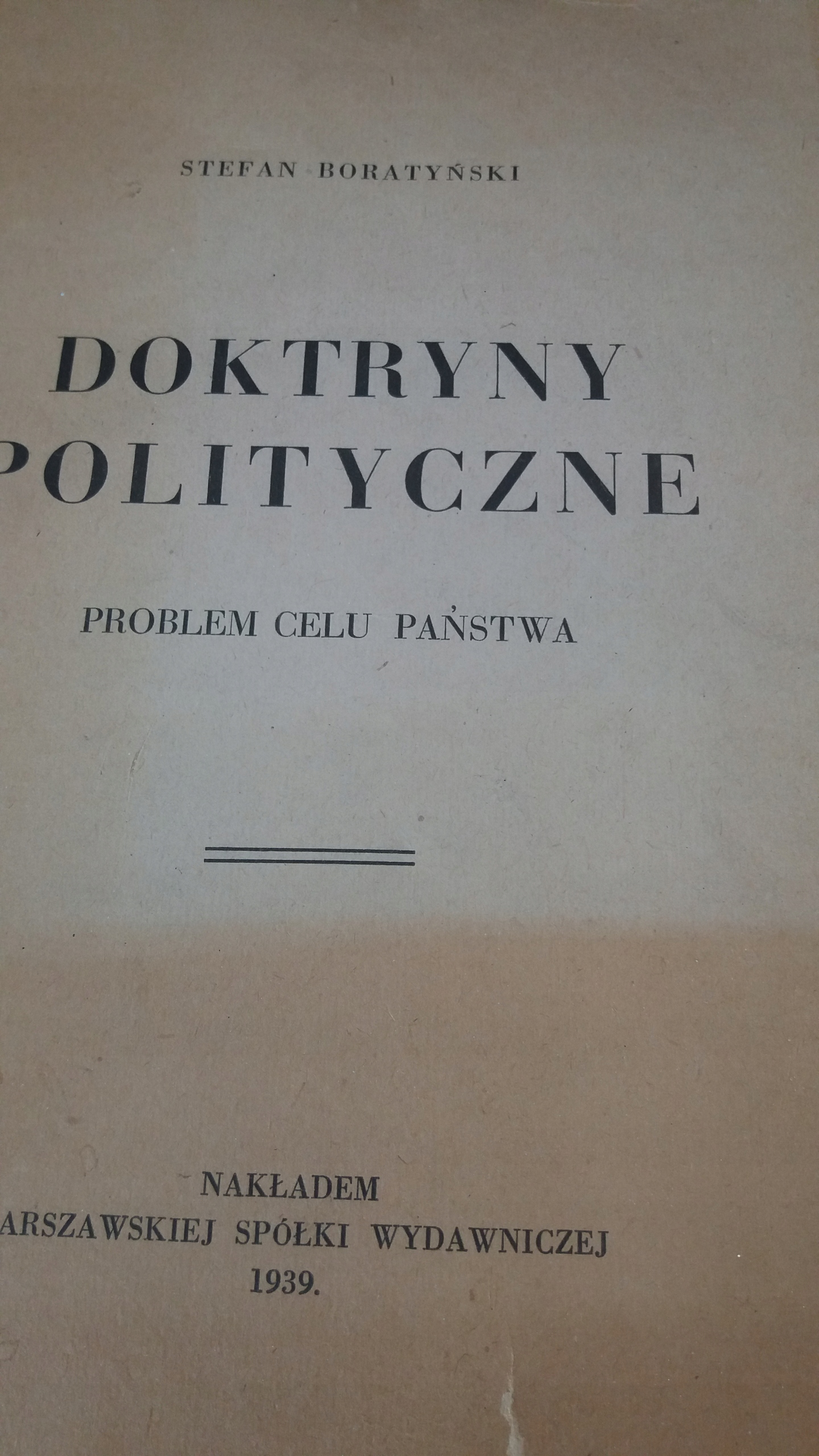 Boratyński DOKTRYNY POLITYCZNE PROBLEM CELU PAŃSTWA 1939